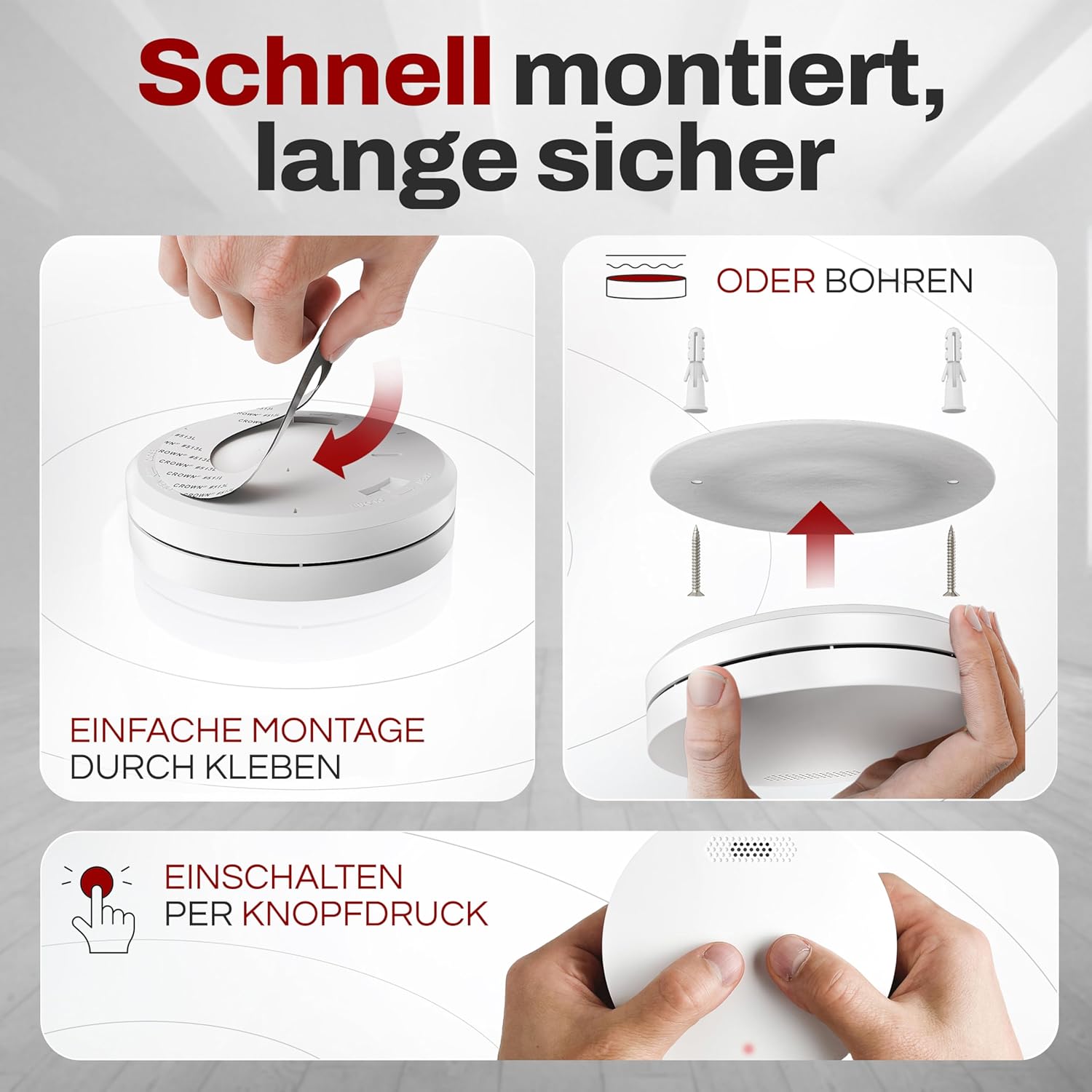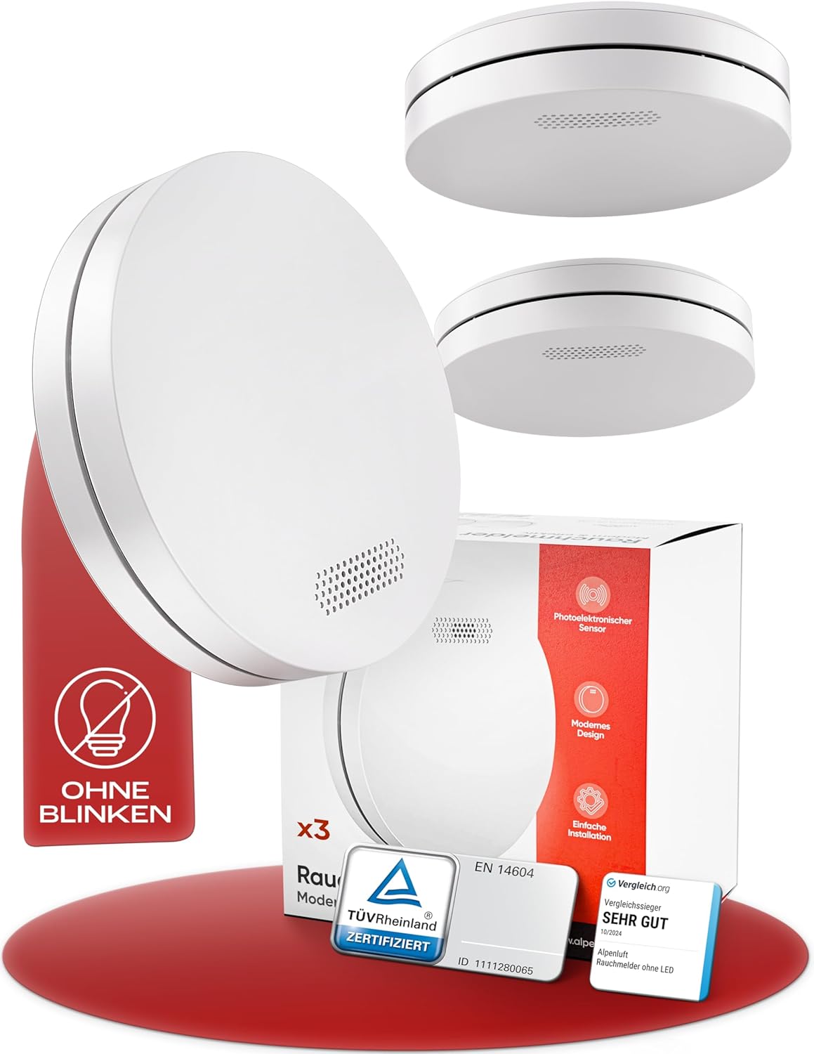 Kompakten in zanesljiv detektor dima ALPENLUFT zagotavlja dolgotrajno zaščito vašega doma. S 10-letno baterijo, preprosto namestitvijo in tihim delovanjem brez LED utripanja je primeren tudi za spalnice in druge bivalne prostore.