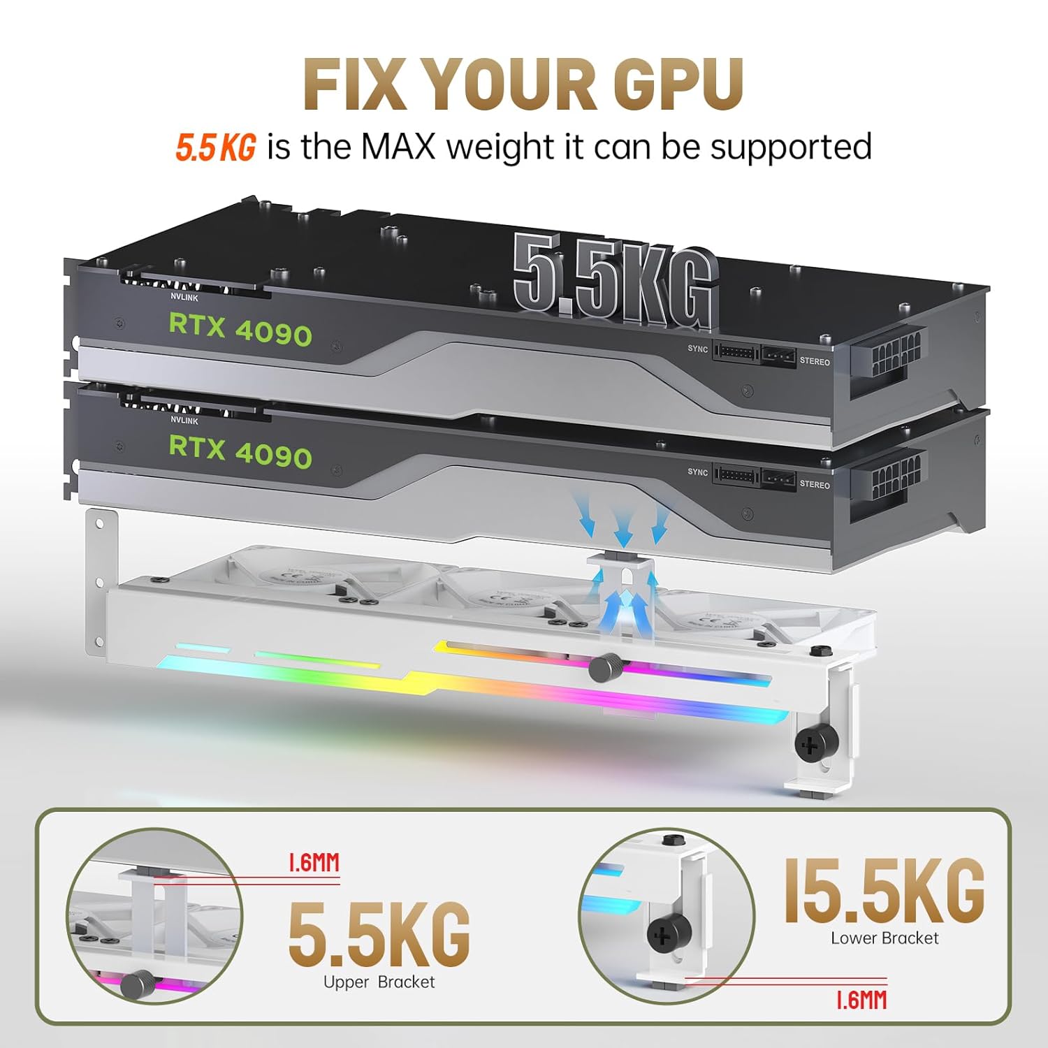 Stabilna konstrukcija: Kovinski nosilec preprečuje upogibanje in povešanje grafične kartice, zagotavlja dolgotrajno podporo.
