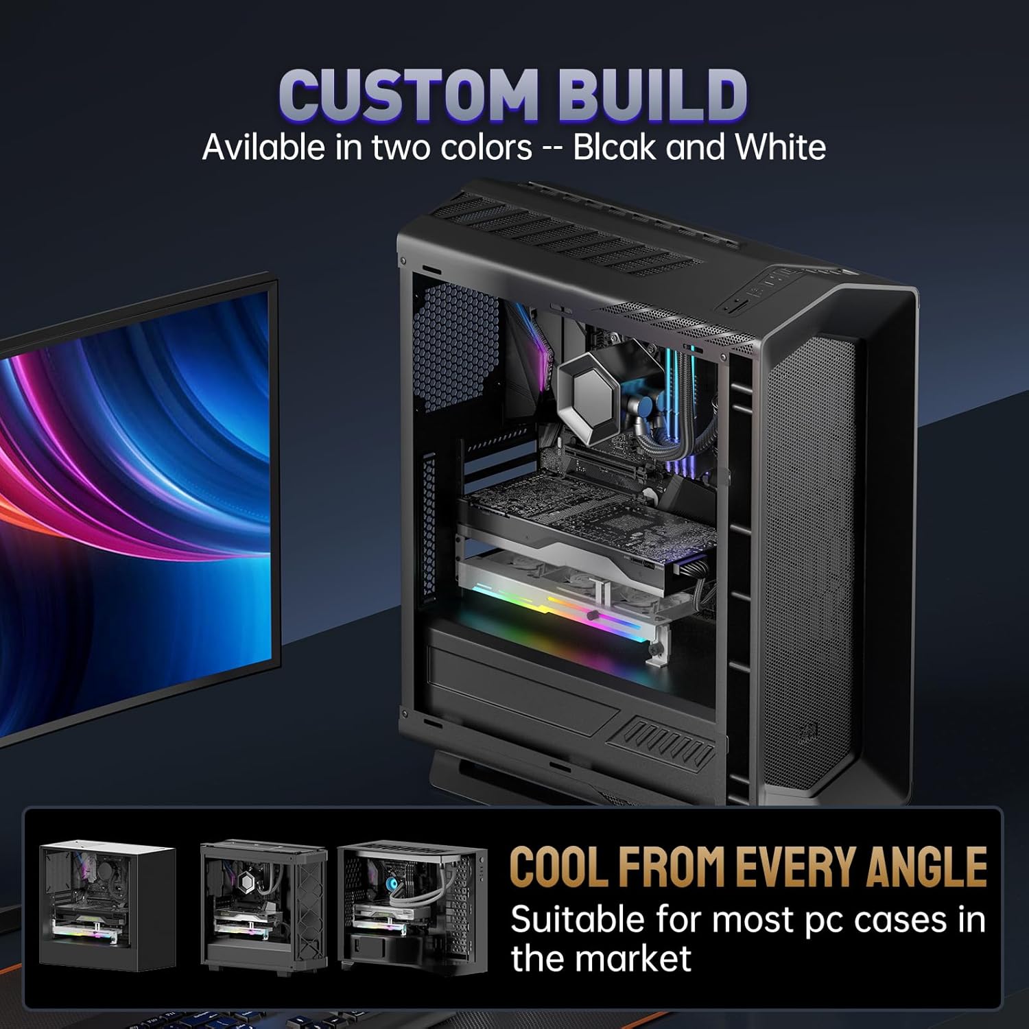 ASIAHORSE 80 mm PWM ARGB GPU Ventilator za grafične kartice z Nosilcem