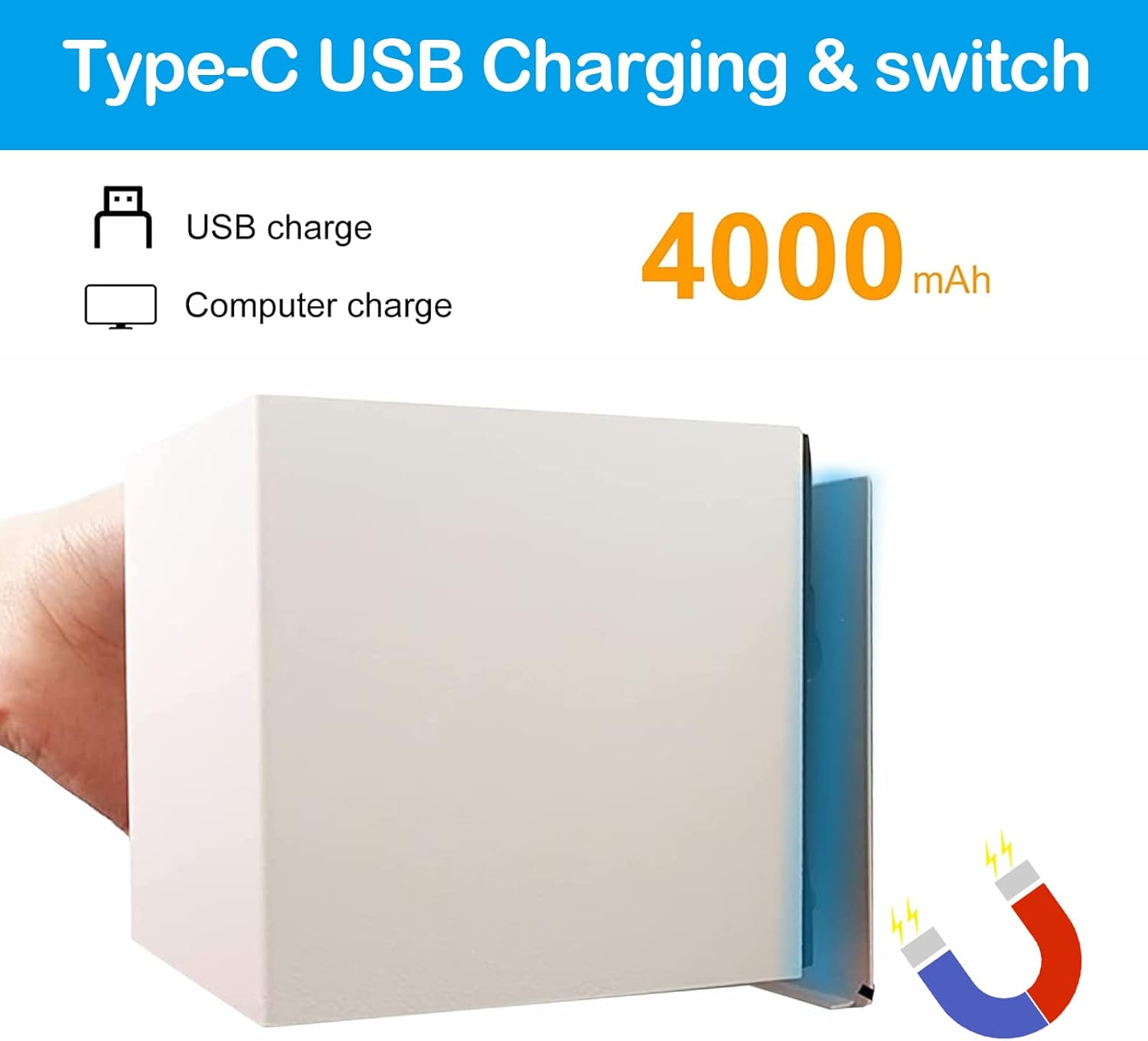 USB-C polnjenje: Enostavno polnjenje vgrajene 4000 mAh baterije z možnostjo odstranitve svetilke z magnetnega nosilca.