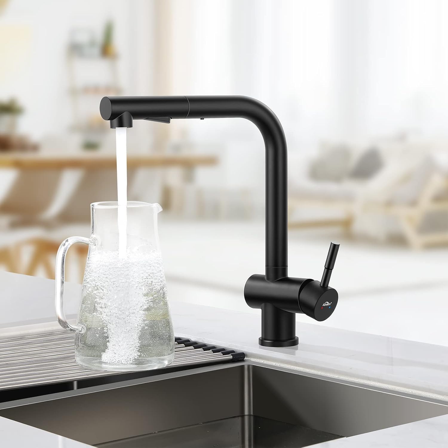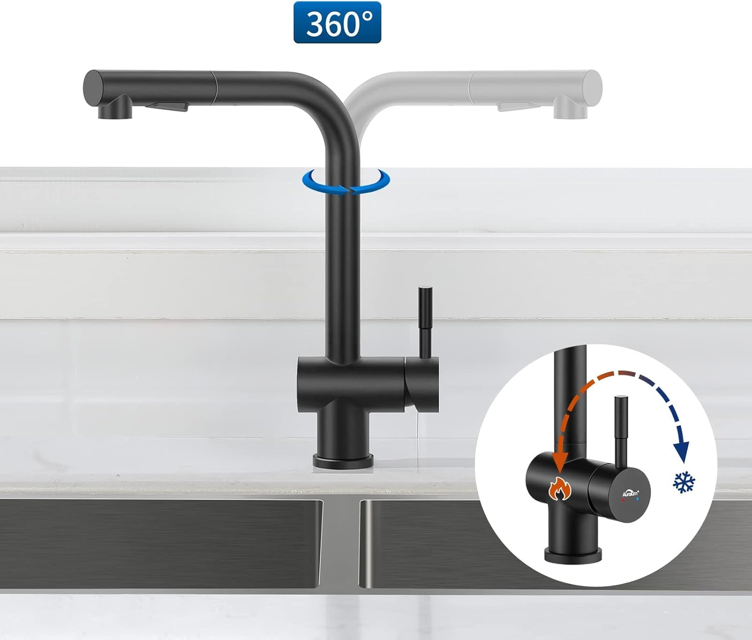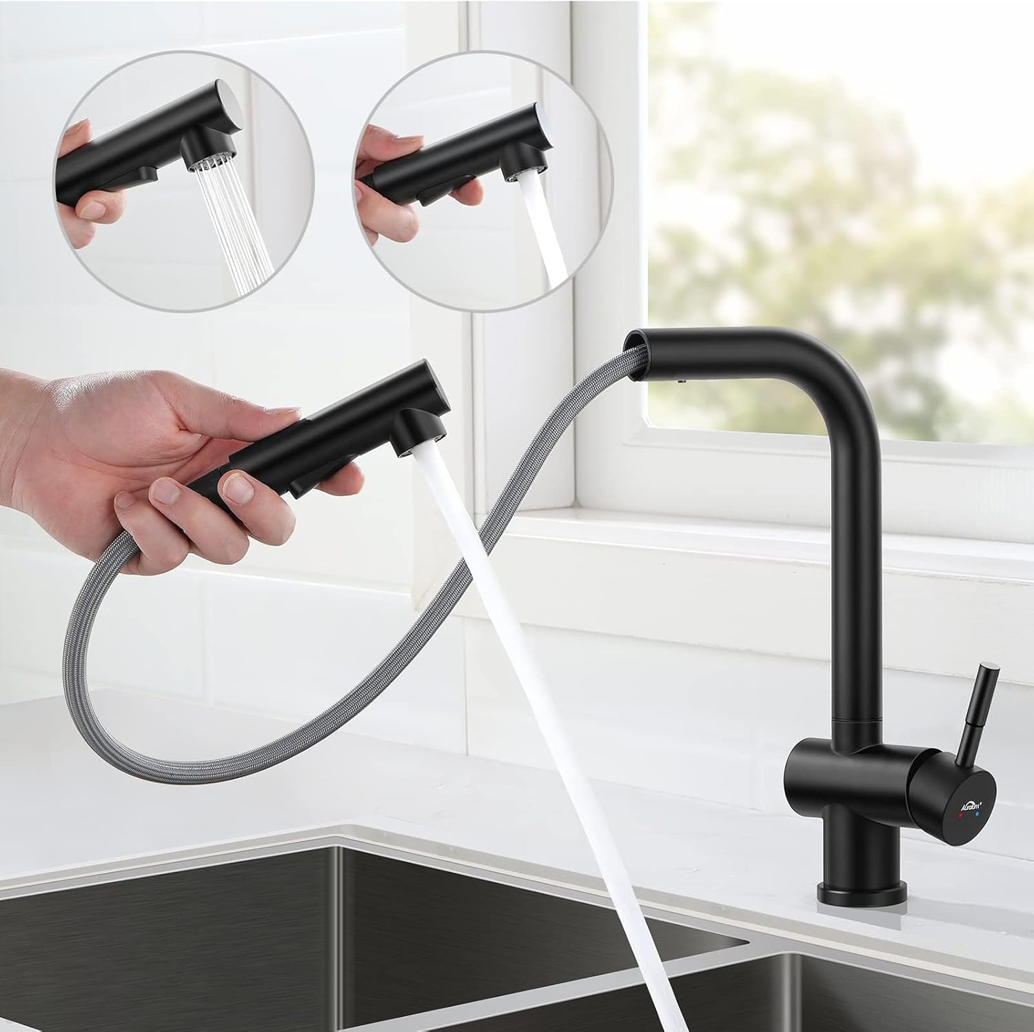 AURALUM kuhinjska armatura z izvlečno prho – mat črna