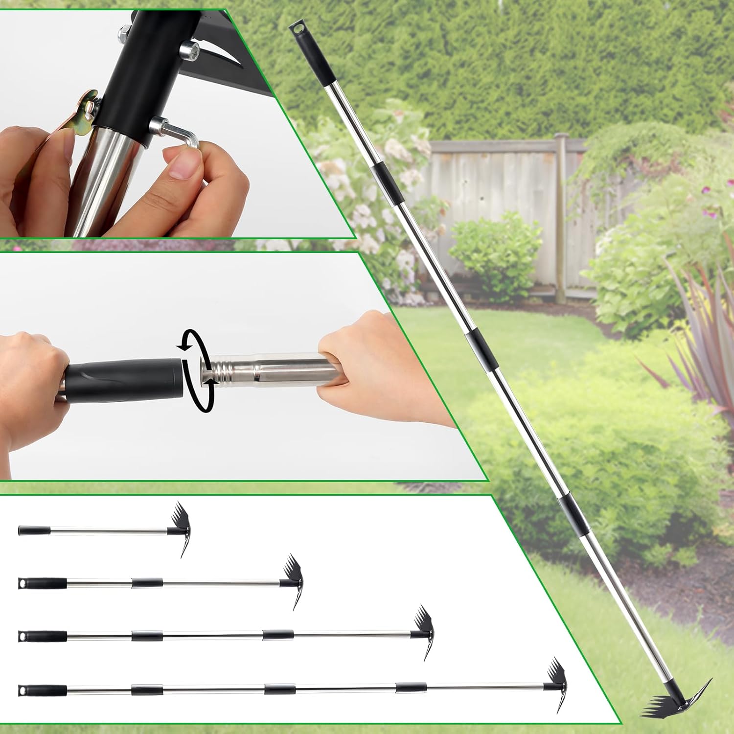 Ergonomska uporaba brez pripogibanja: 150 cm dolg ročaj omogoča navor in enostavno izruvanje plevela, hkrati pa razbremeni hrbet.