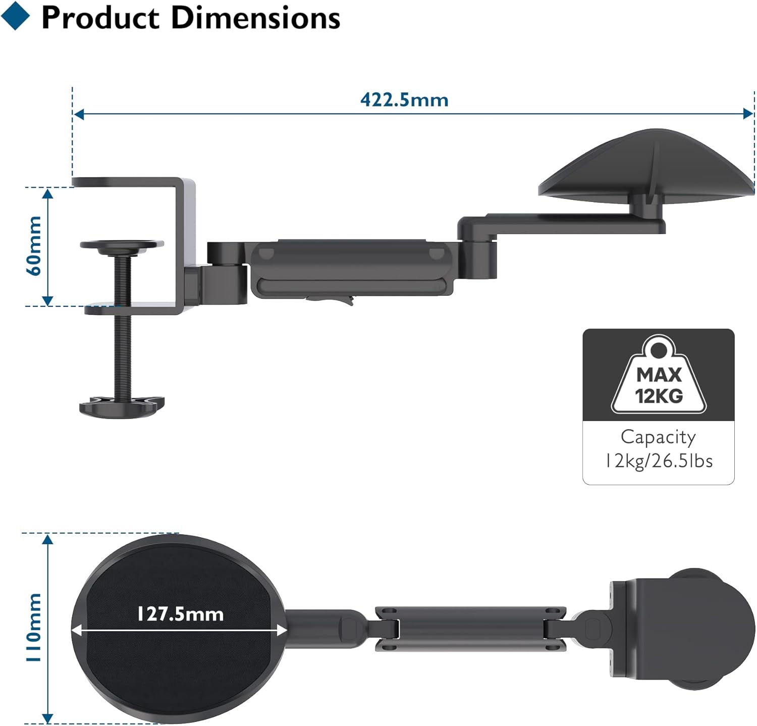 Ergonomska opora za roko nudi popolno podporo podlakti, zmanjša obremenitev od zapestja do ramen in omogoča udobnejše delo ali igranje. Primerna je za dolgotrajno uporabo in prispeva k boljši drži.
