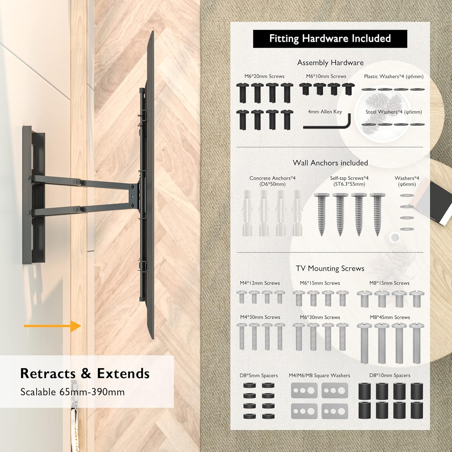 Trpežna dvojna roka: Izdelana iz jekla visoke trdnosti, odporna proti rji in deformacijam; stabilno drži TV do 60 kg.
