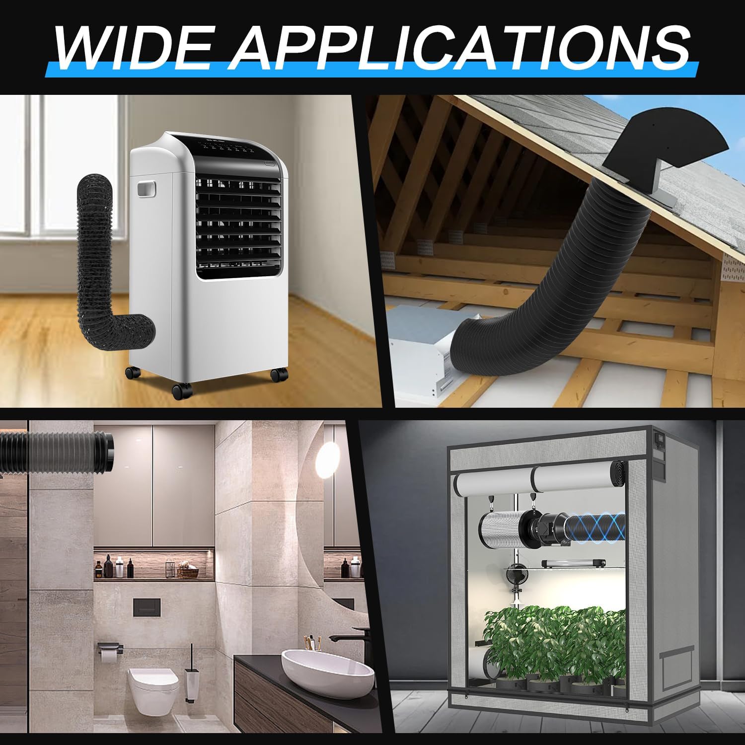 Univerzalna uporaba: Idealna za odvod zraka pri napah, mobilnih klimatskih napravah, ventilatorjih, hidroponskih sistemih ali rastlinjakih.