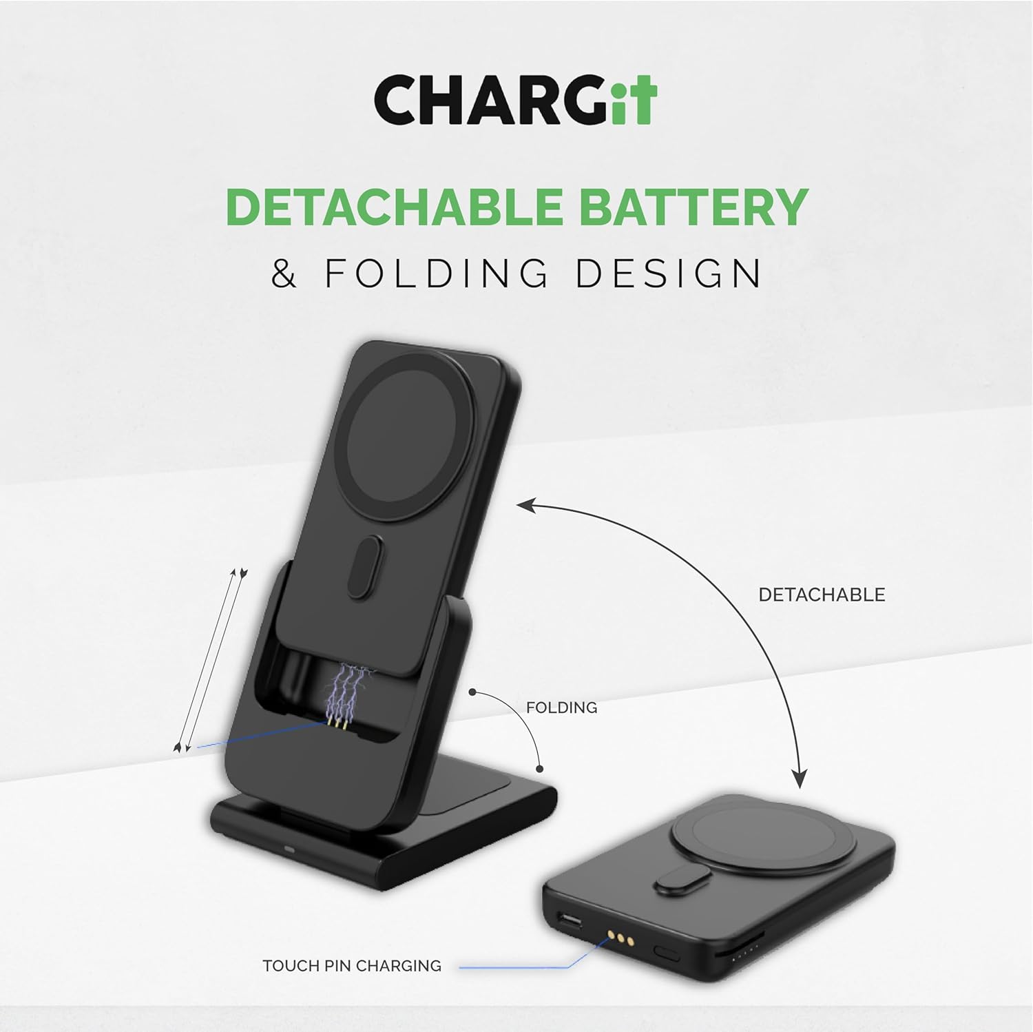 CHARGit Magnetno Brezžičn Polnilno Stojalo z Odstranljivo Power Bank Baterijo za Apple naprave