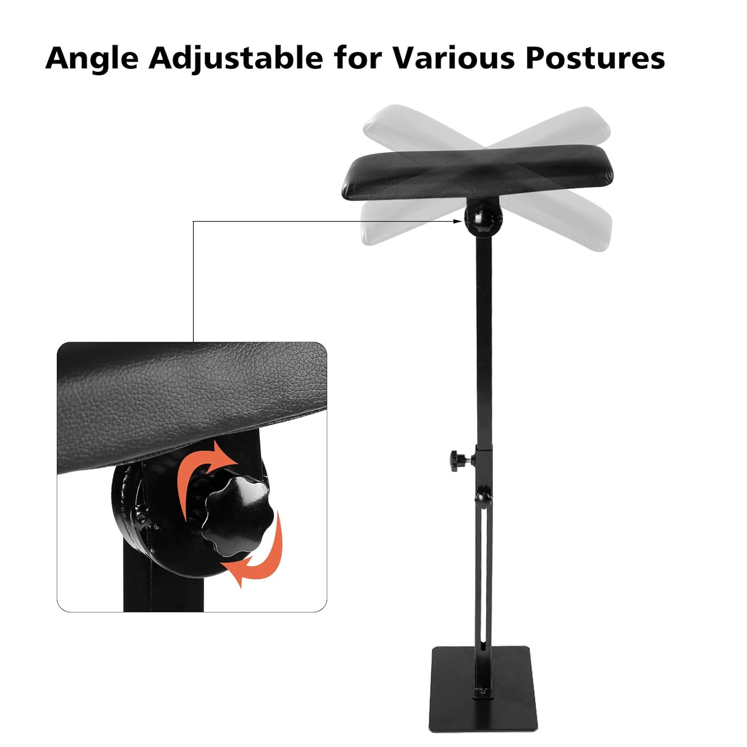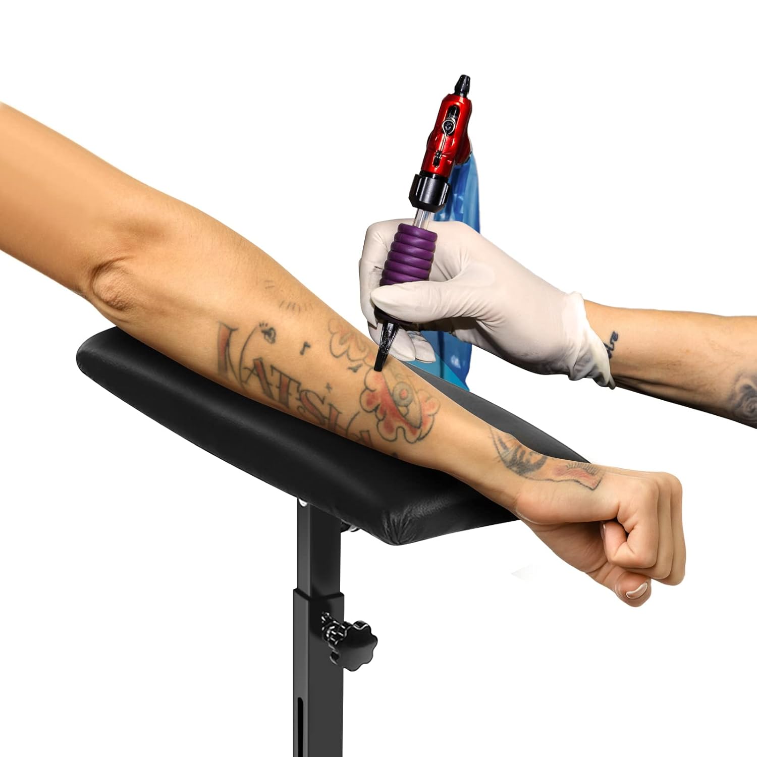 Kakovostna in stabilna opora za roko, zasnovana za profesionalne tattoo studie in osebno uporabo. Izdelana je iz trpežnih kovinskih nog in mehke, udobne blazine, ki zagotavlja oporo roki, nogi ali stopalu med tetoviranjem. Omogoča nastavitev višine in kota za maksimalno udobje tetovatorja in stranke.