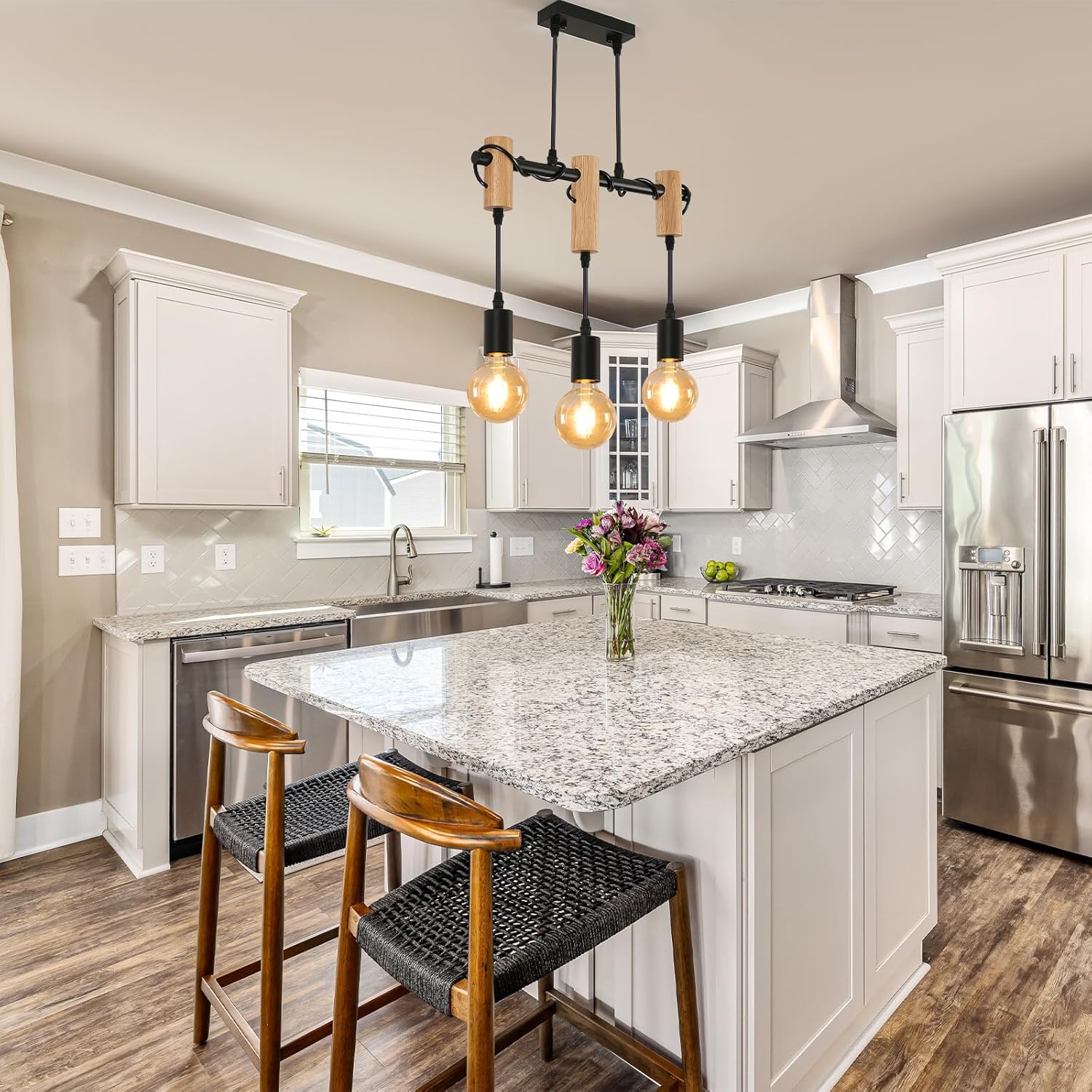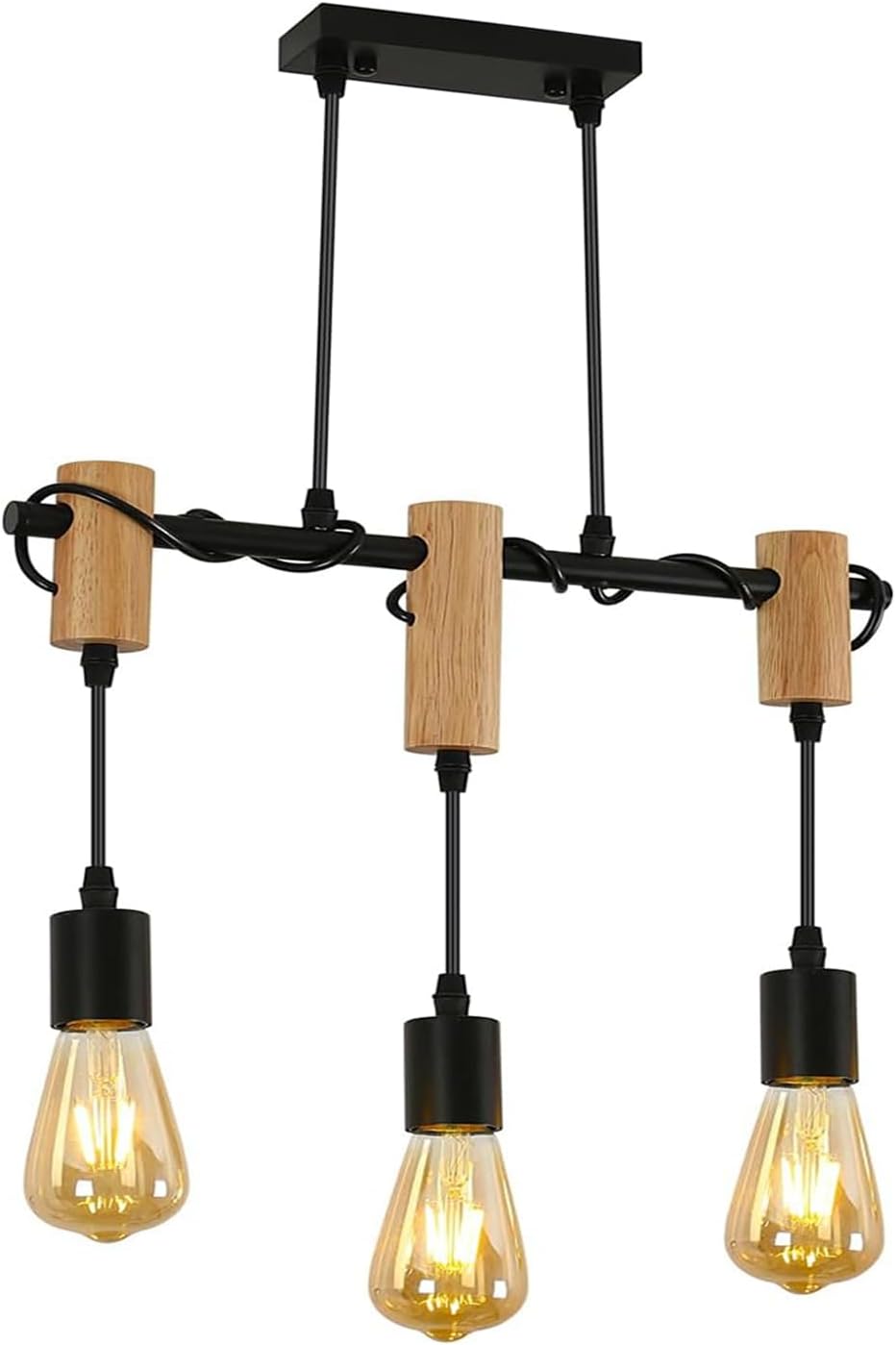 Elegantna viseča svetilka z naravnim pridihom lesa in modernim črnim zaključkom, ki se odlično poda v dnevne sobe, jedilnice ali druge bivalne prostore. Prilagodljiva zasnova omogoča nastavitev višine posameznih svetil, kar zagotavlja optimalno osvetlitev in estetski videz prostora.