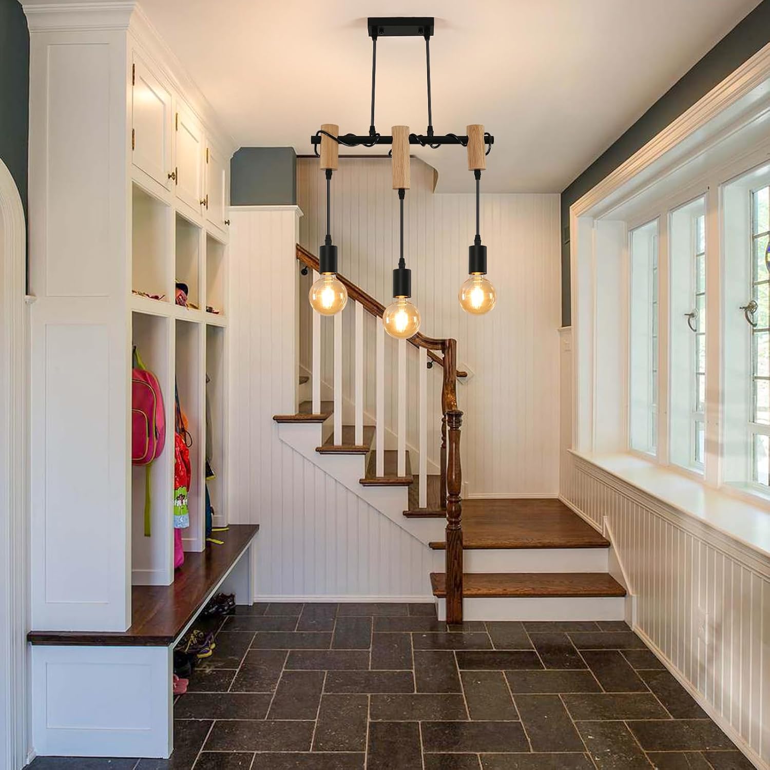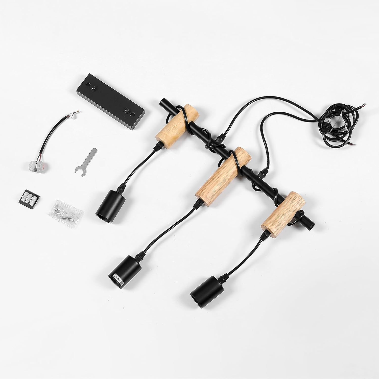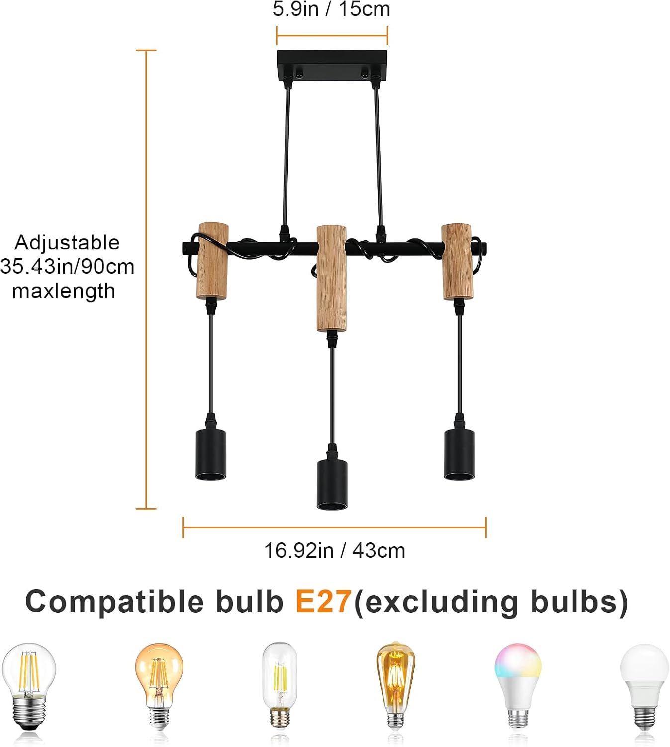 DAXGD nastavljiva viseča svetilka s tremi senčili v črni in leseni izvedbi