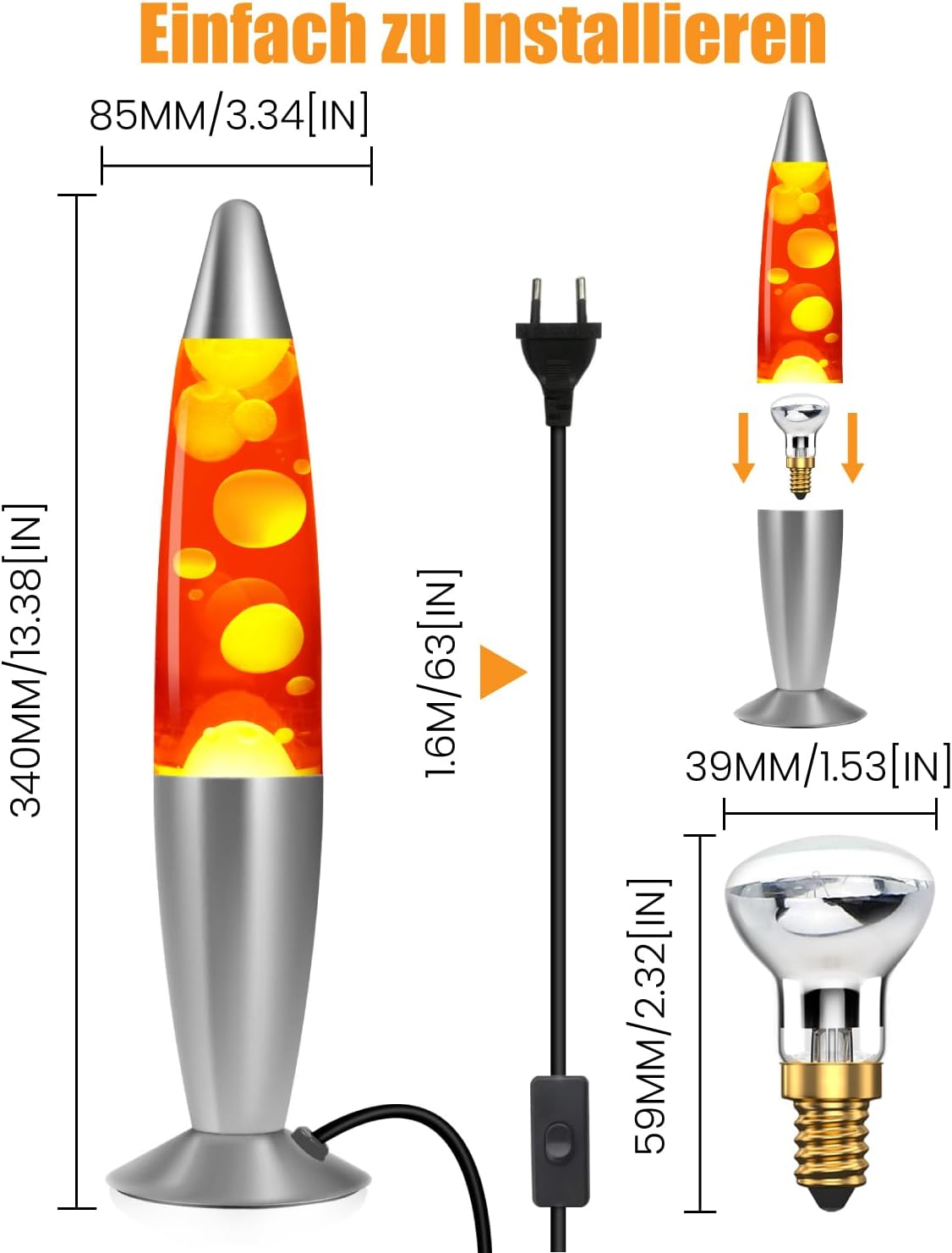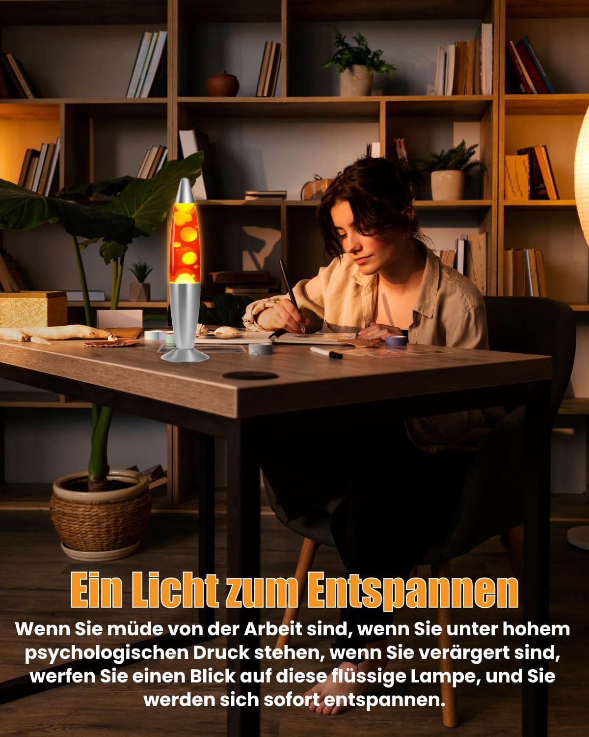Lava svetilka s klasičnim videzom in pomirjujočim premikanjem voska, ki ustvarja prijetno atmosfero in sproščujoče okolje.