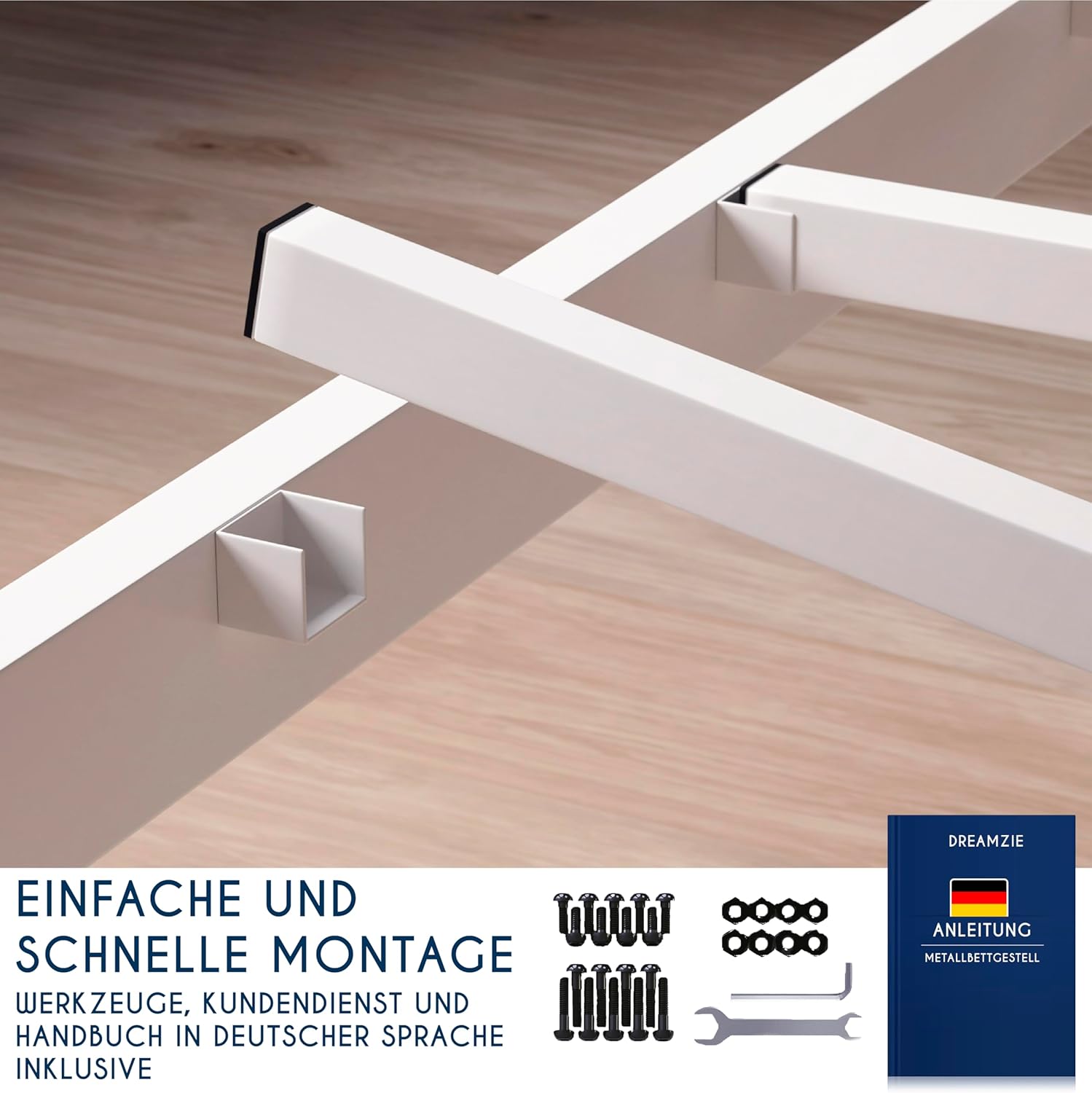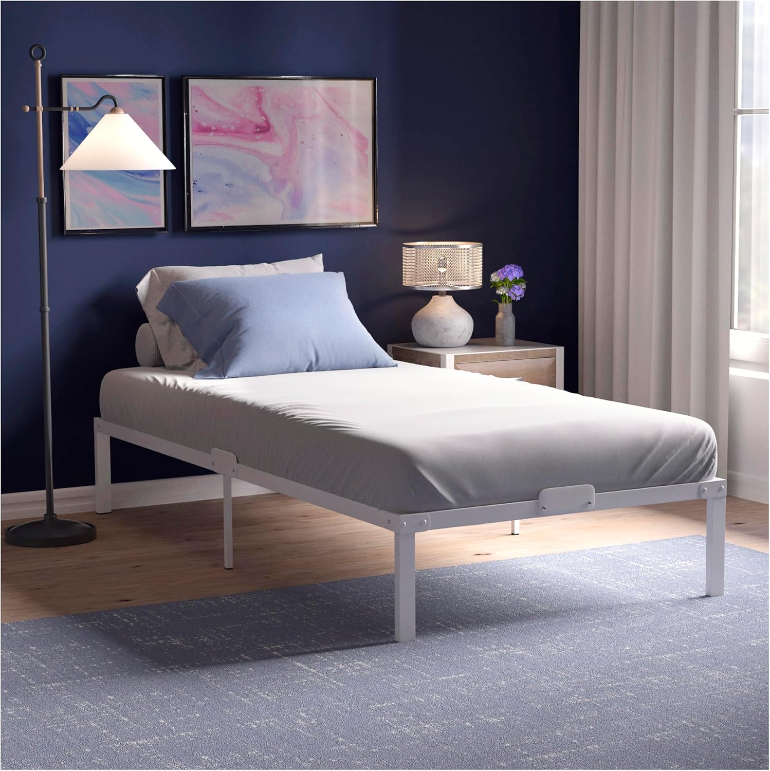 Moderna kovinska postelja v dimenziji 90 × 200 cm ponuja izjemno stabilnost, tiho uporabo in veliko odlagalnega prostora pod posteljo. Zaradi minimalističnega belega dizajna se popolno poda v vsak spalni prostor, poleg tega pa jo lahko sestavite v manj kot 20 minutah.