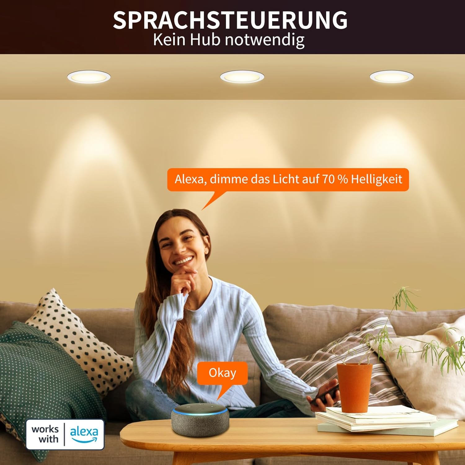 Pametni vgradni LED reflektorji omogočajo upravljanje prek aplikacije BRmesh ali glasovno z Alexo. Ponuja 16 milijonov barv, 22 dinamičnih načinov, časovnik, sinhronizacijo z glasbo ter zaščito IP44, kar jih naredi primerne tudi za vlažne prostore.