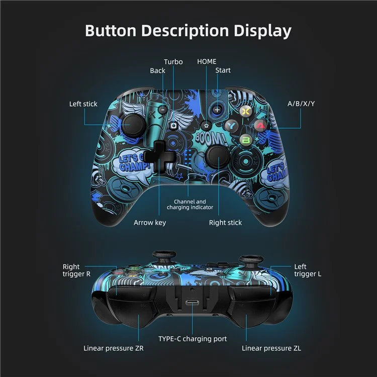 Funkcije: Turbo, dvojne vibracije s 5 stopnjami intenzivnosti, 6-osni žiroskop, LED osvetlitev tipk ABXY, funkcija “Wake Up”;