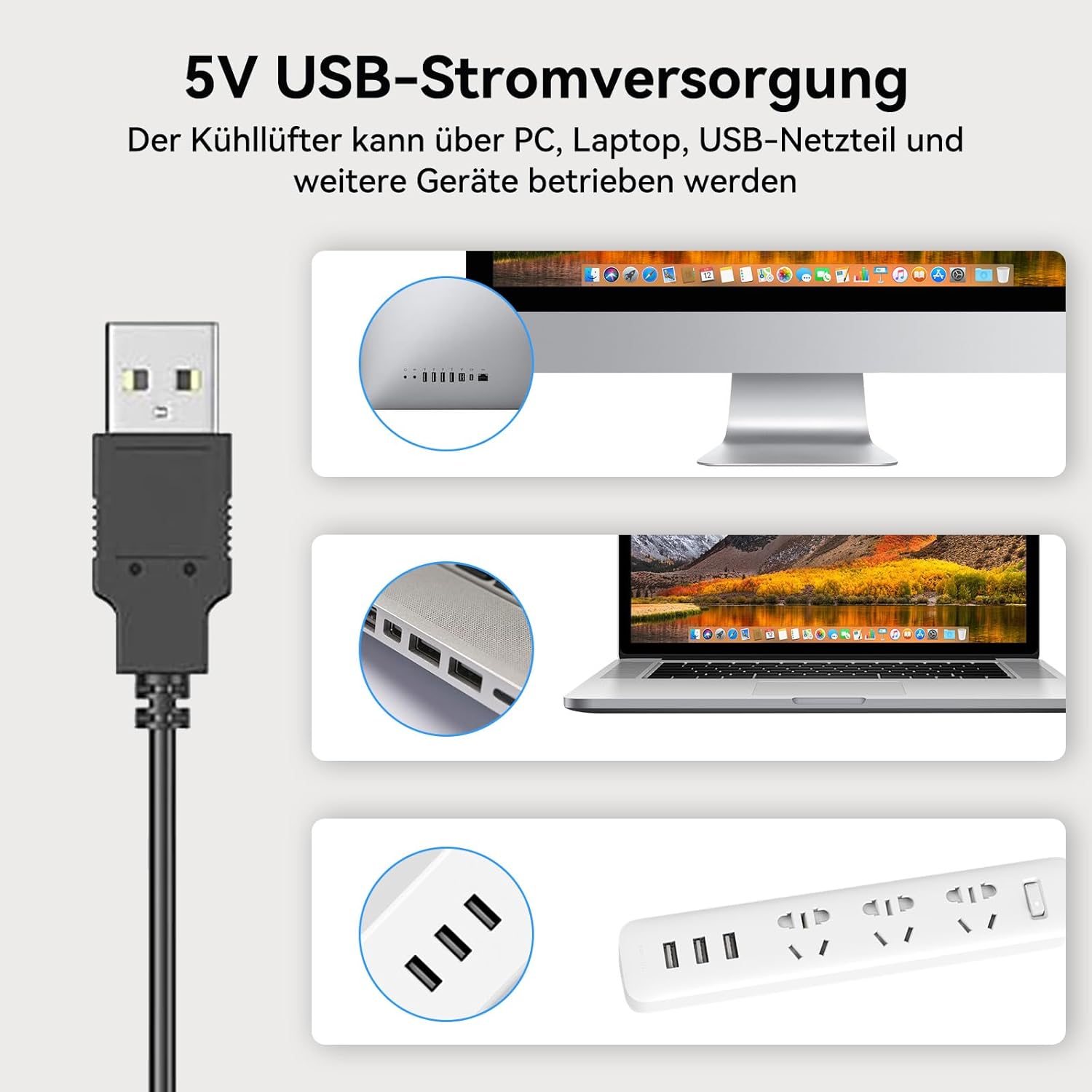 Široka združljivost: Primeren za hlajenje PC-jev, prenosnikov, usmerjevalnikov, diskovnih enot, AV-opreme in igralnih konzol. Plug & play preko USB-ja brez zapletenih povezav.