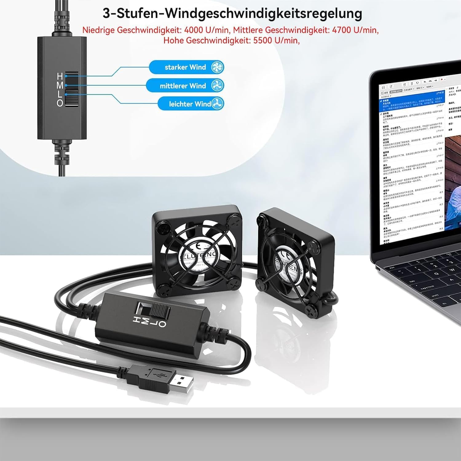 ELUTENG 2-v-1 USB ventilator prinaša učinkovito in hitro hlajenje za vse vrste elektronskih naprav v kompaktnem formatu. Dvojni ventilator omogoča hlajenje iz dveh smeri hkrati, kar povečuje učinkovitost in hitrost ohlajanja. Idealen je za uporabo pri računalnikih, igralnih konzolah, prenosnih diskih, TV boxih ali usmerjevalnikih – povsod tam, kjer je prostor omejen in je potreben zanesljiv pretok zraka.