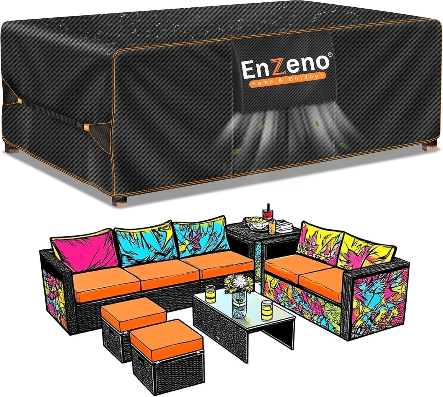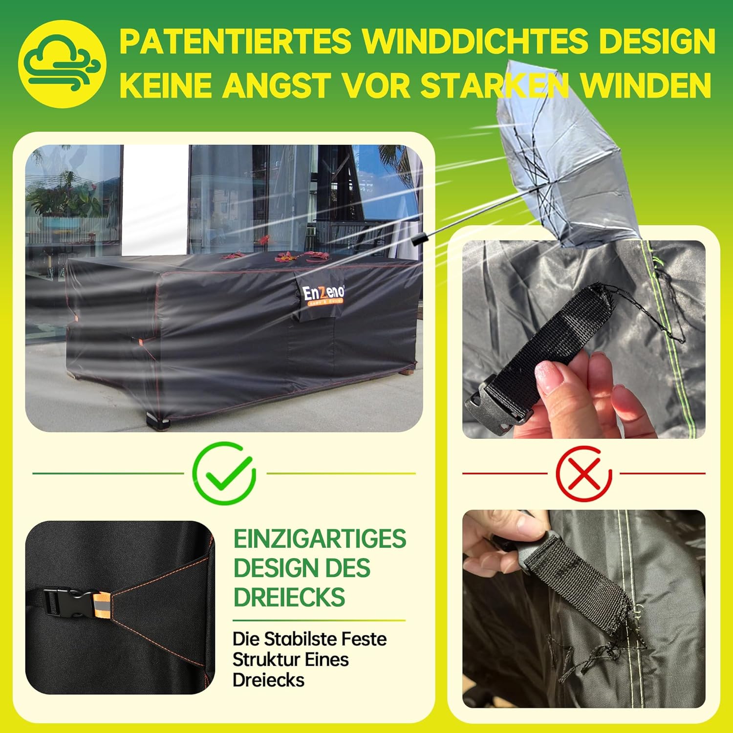 Zaščitna prevleka ENZENO nudi zanesljivo zaščito zunanjega pohištva pred dežjem, snegom, prahom in soncem skozi vse leto. Izdelana je iz težke Oxford tkanine z notranjo PVC-prevleko in zatesnjenimi šivi, kar zagotavlja izboljšano vodoodpornost in dolgo življenjsko dobo. Idealna je za pravokotne vrtne mize in garniture.