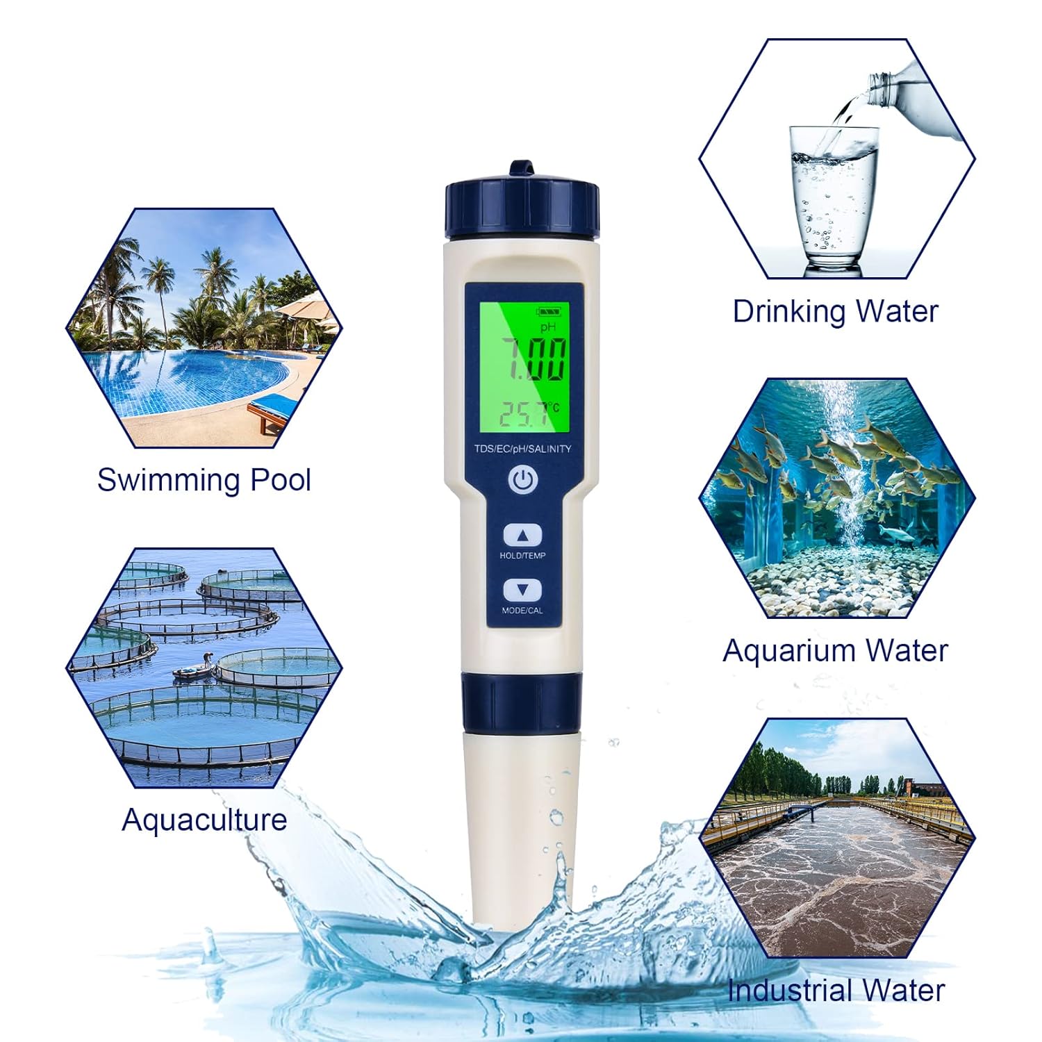 5-v-1 funkcionalnost: omogoča sočasno merjenje pH, TDS, EC, slanosti in temperature za popoln pregled kakovosti vode;