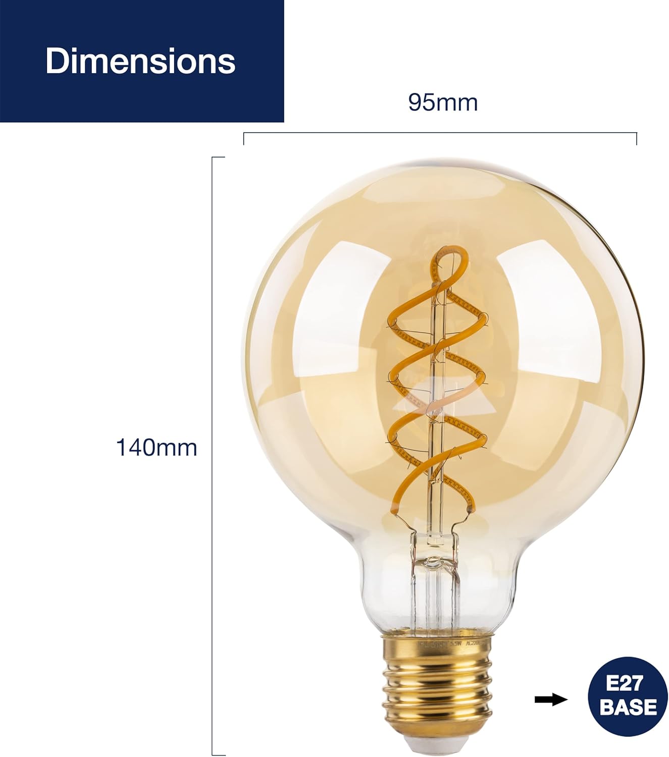 Dekorativne LED žarnice G95 izdelane iz jantarnega stekla oddajajo prijetno toplo belo svetlobo (2700 K) ter ustvarjajo mehko in sproščujoče vzdušje. Možnost zatemnjevanja omogoča popoln nadzor nad svetlobno intenzivnostjo, kar jih naredi idealne za domačo ali komercialno uporabo.