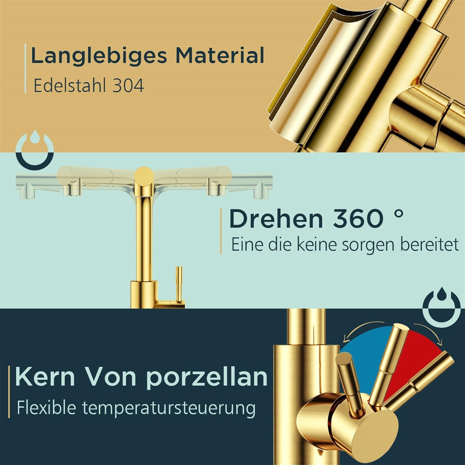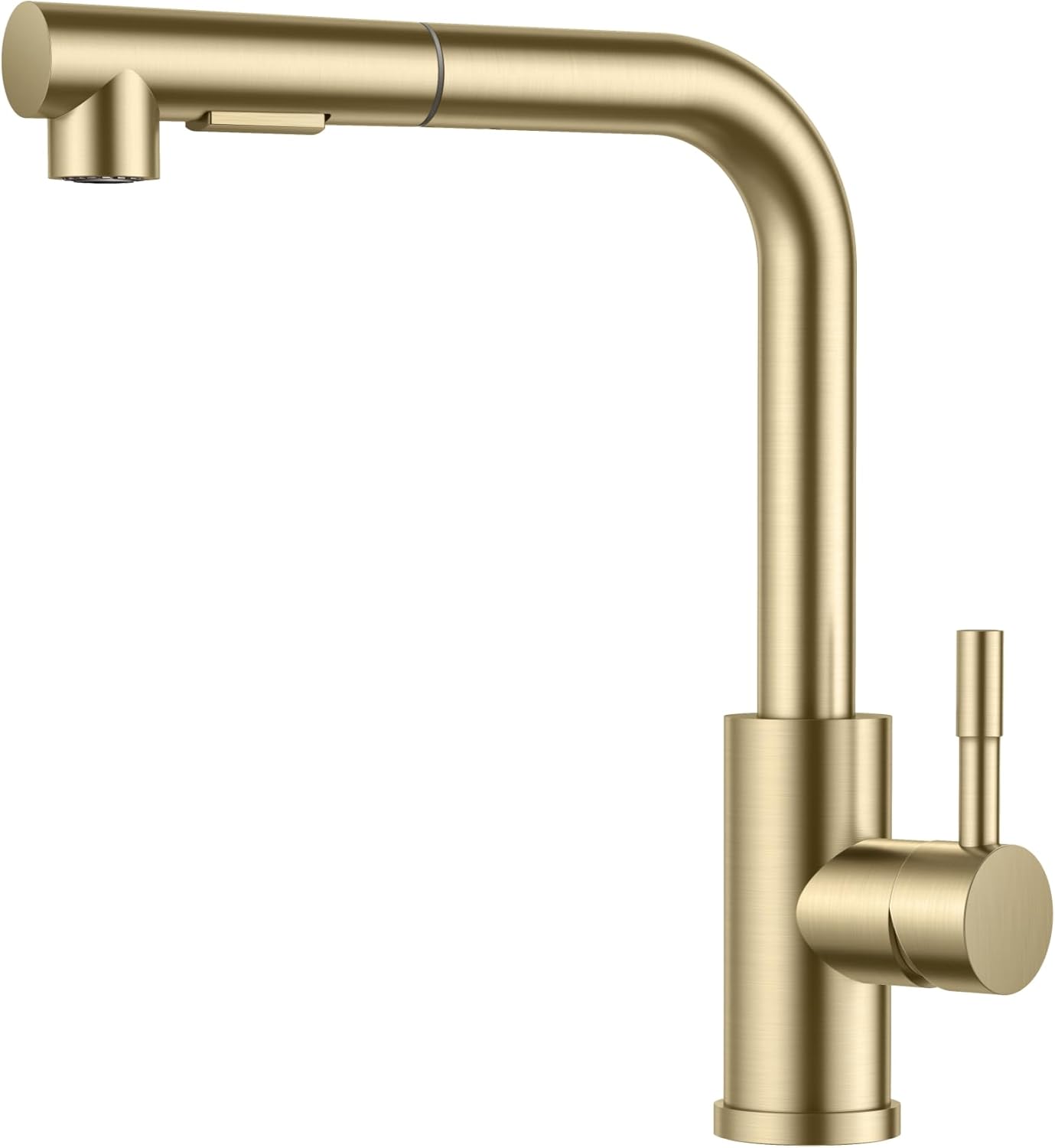 Elegantna kuhinjska armatura v brušenem zlatem odtenku združuje sodoben dizajn in vrhunsko funkcionalnost. Z visoko ukrivljenim izlivom, 360° vrtenjem in izvlečno pršno glavo omogoča priročno uporabo za vse kuhinjske naloge – od vsakodnevnega pomivanja do intenzivnega čiščenja. Izdelana iz trpežnega nerjavečega jekla zagotavlja dolgo življenjsko dobo, enoročna ročica pa omogoča enostaven nadzor temperature in pretoka vode.