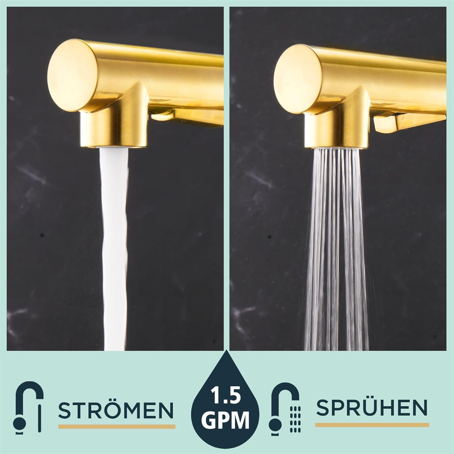 FORIOUS Kuhinjska Armatura Z Izvlečno Pršno Glavo In Dvojnim Načinom Delovanja - brušeno zlato