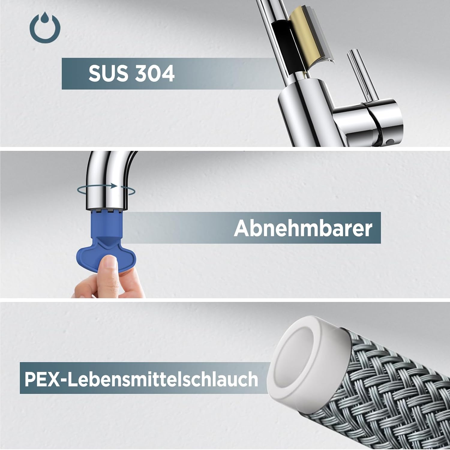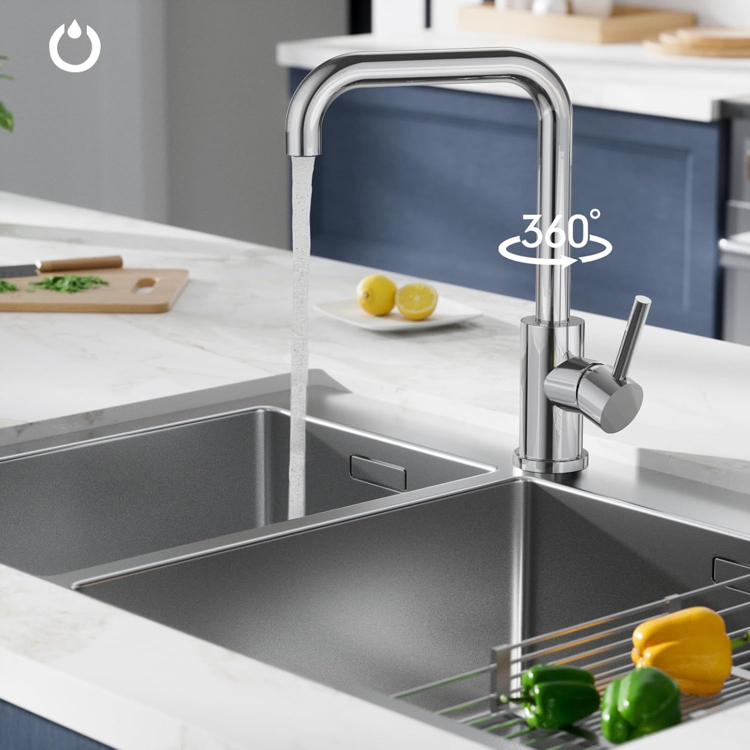 FORIOUS Kuhinjska Armatura Z L-Oblikovanim Izlivom In 360° Vrtenjem