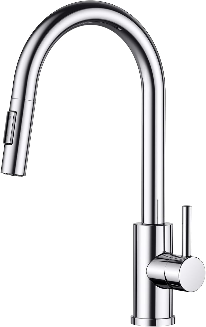 FORIOUS kuhinjska armatura z visokim lokom in izvlečno prho – polirani krom