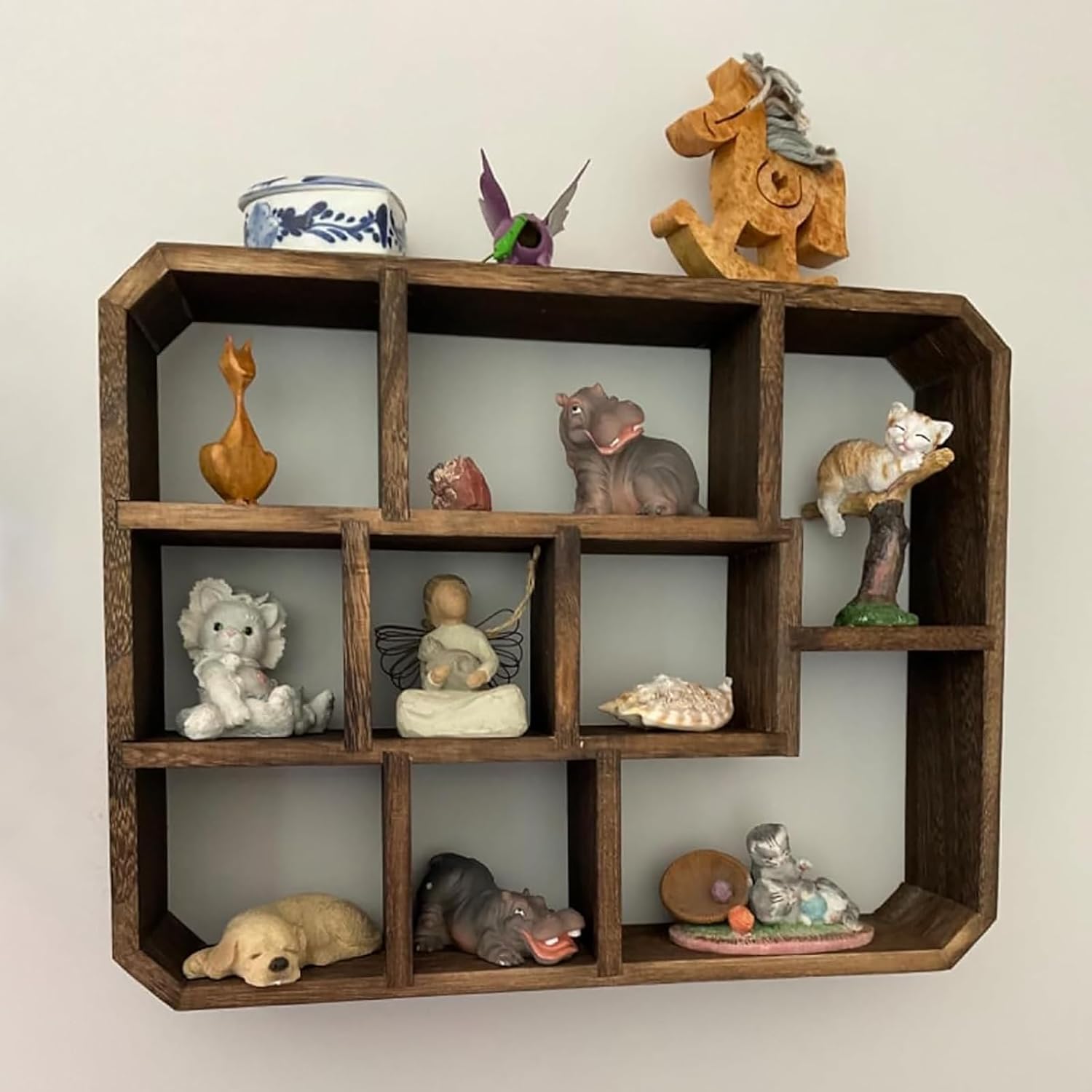 FRCCTRE rustikalna lesena stenska ali samostoječa polica z 9 predali