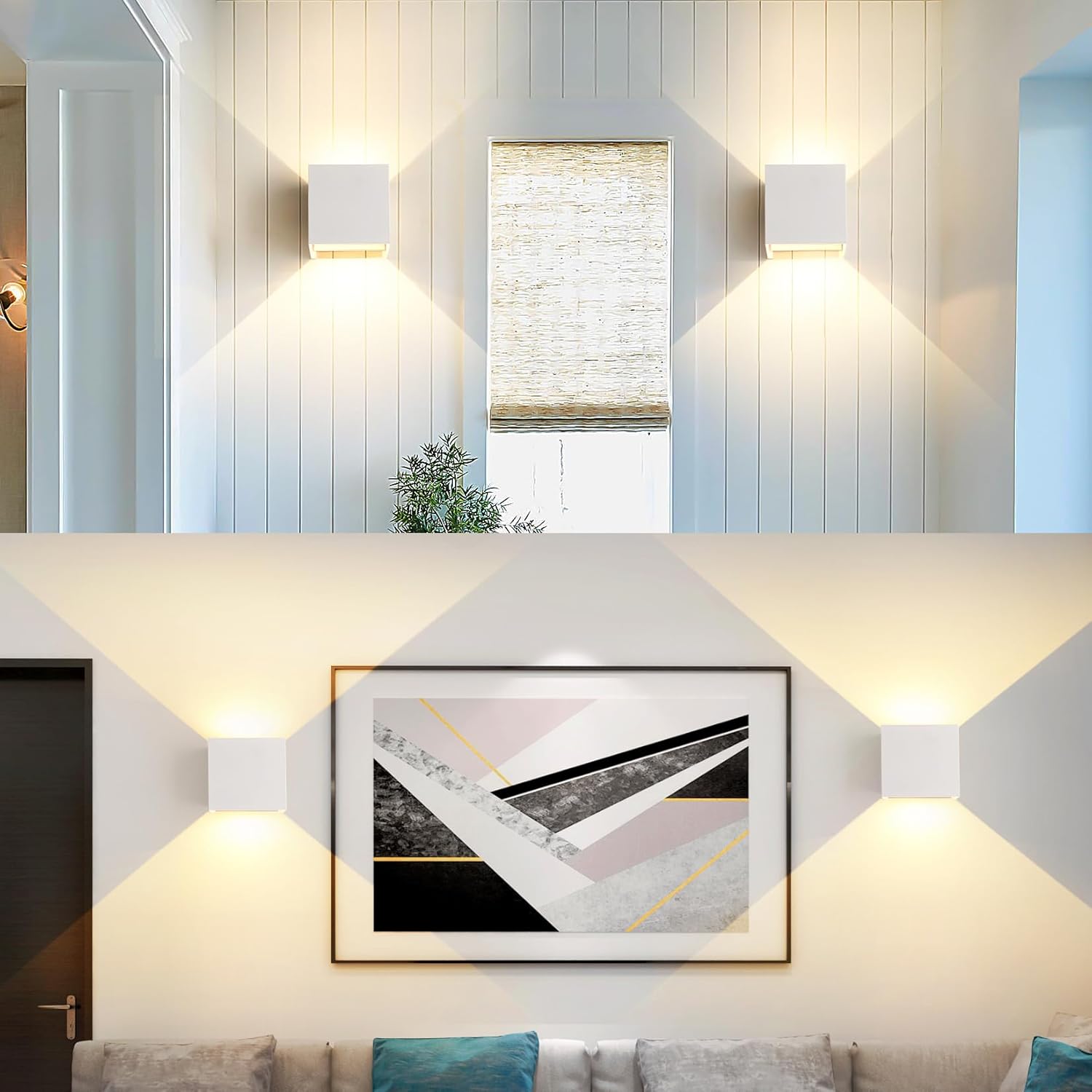 FUPE moderni LED stenski svetilki z močjo 6 W (3 W × 2) in naravno belo svetlobo 4000 K ponujata enakomerno in prijetno osvetlitev tako zunaj kot znotraj.
