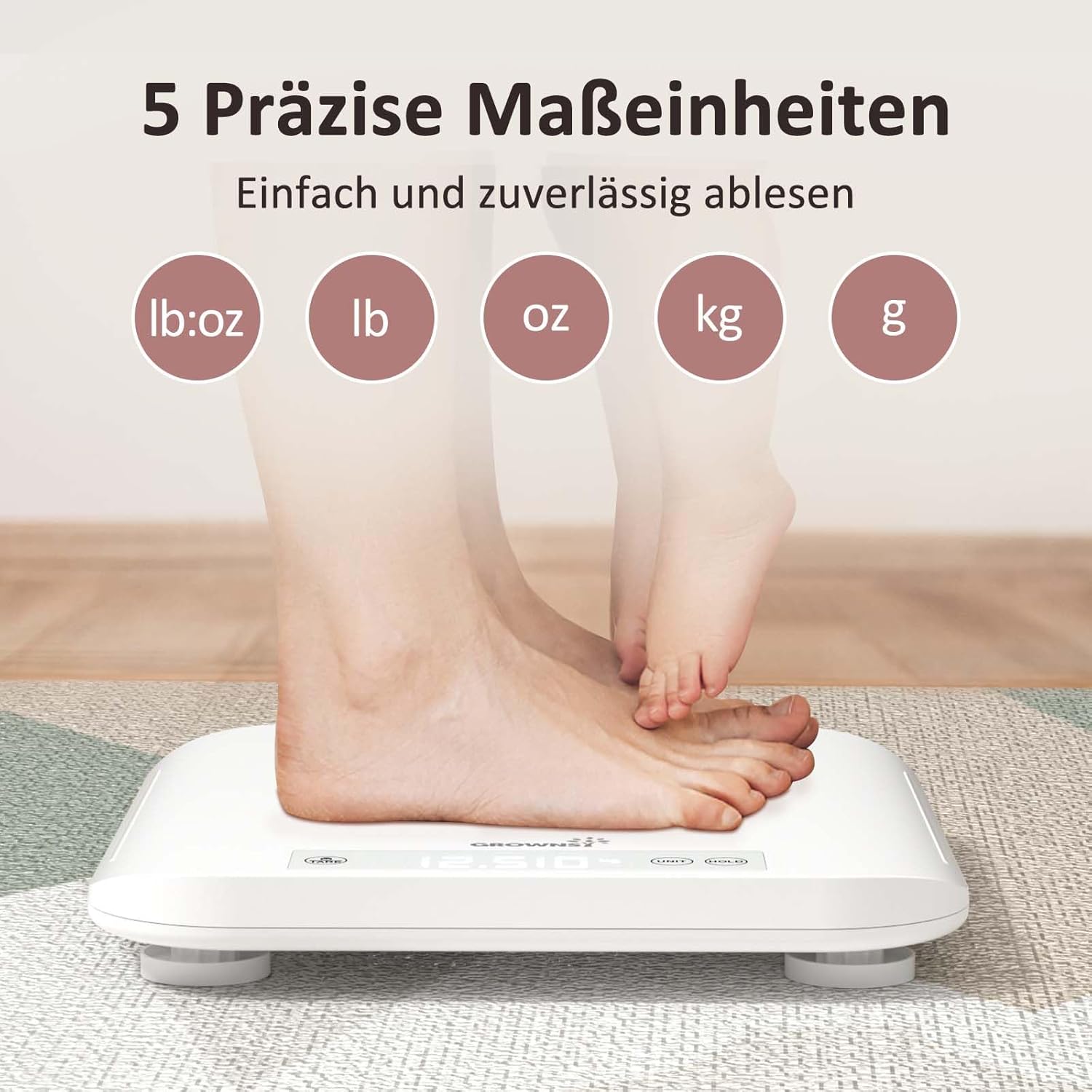 Večnamenska tehtnica združuje visoko natančnost, varnost in enostavno uporabo. Z integriranimi senzorji visoke ločljivosti, 70 cm merilno ploščo in funkcijo zadržanja teže omogoča natančno spremljanje rasti dojenčkov, otrok, hišnih ljubljenčkov ali odraslih.