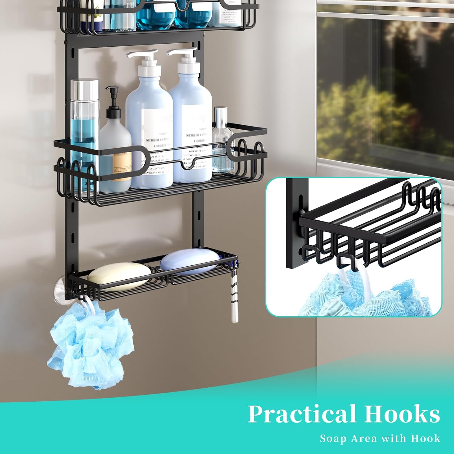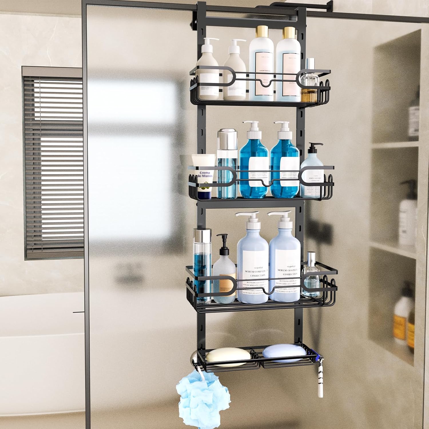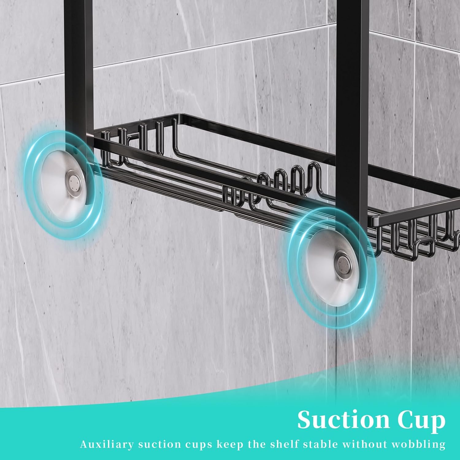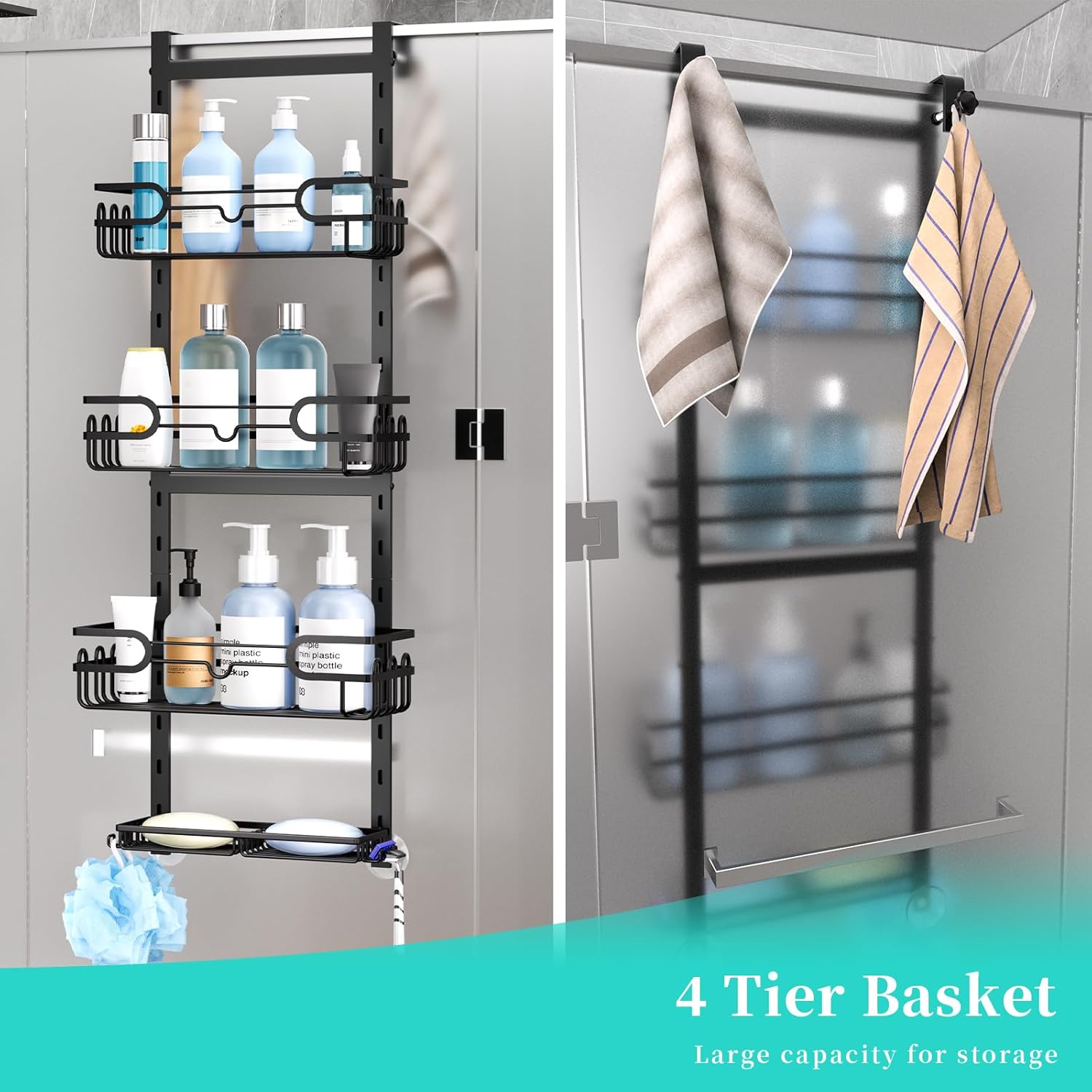 HAPIRM 4-nadstropna nastavljiva polica za prho z milnikom in kavljem, brez vrtanja