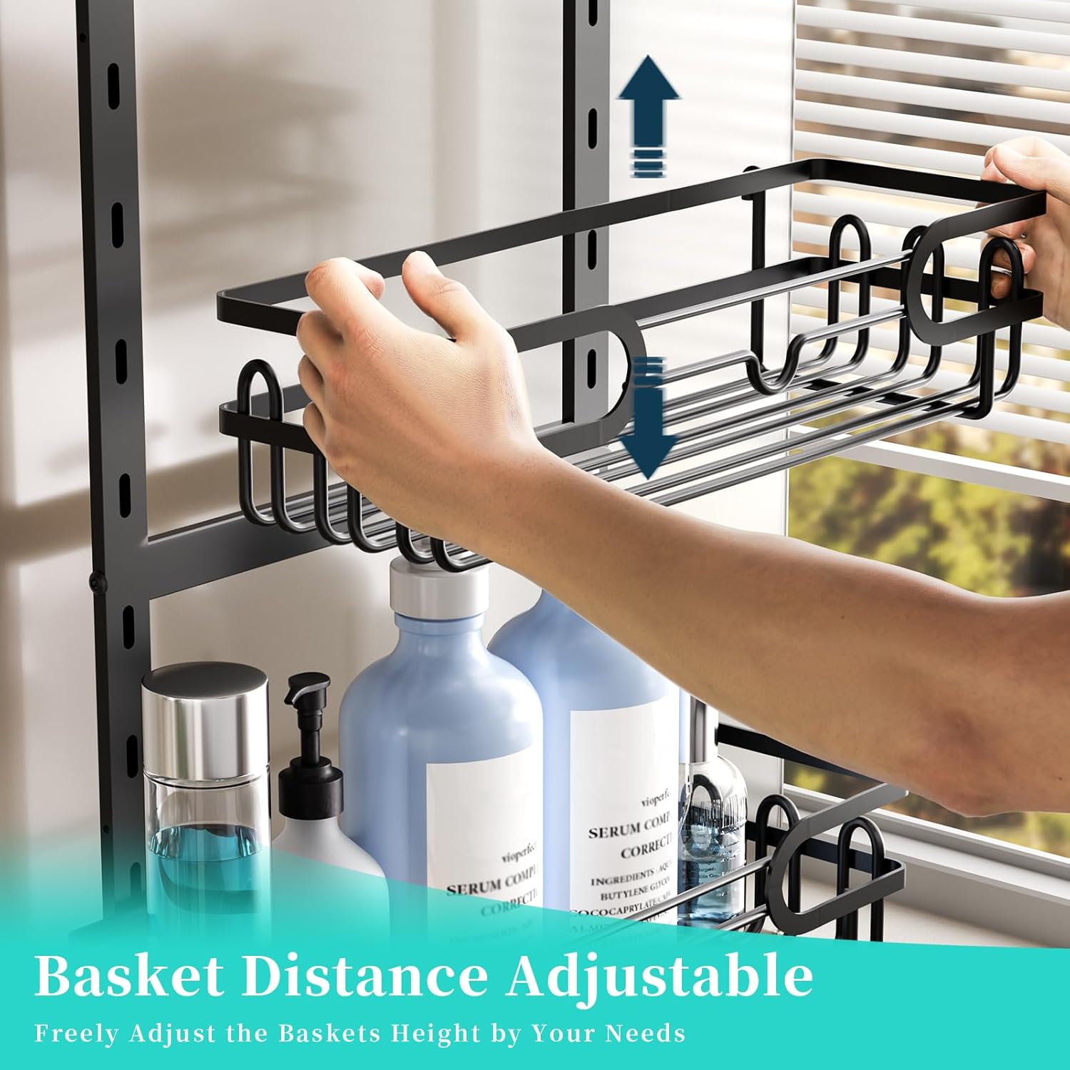 Praktična viseča polica omogoča organizirano shranjevanje kopalniških izdelkov brez vrtanja ali trajne montaže. Izdelana je iz nerjavečega jekla s prašnim premazom, ki zagotavlja odpornost proti rji in dolgo življenjsko dobo. Nastavljiva višina, 4 košare, milnik in kavelj omogočajo prilagodljivo uporabo v vsaki kopalnici.
