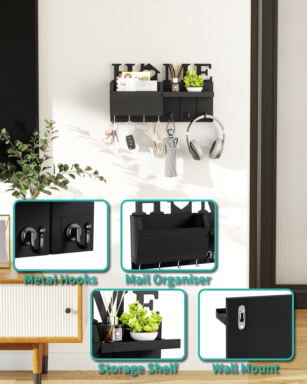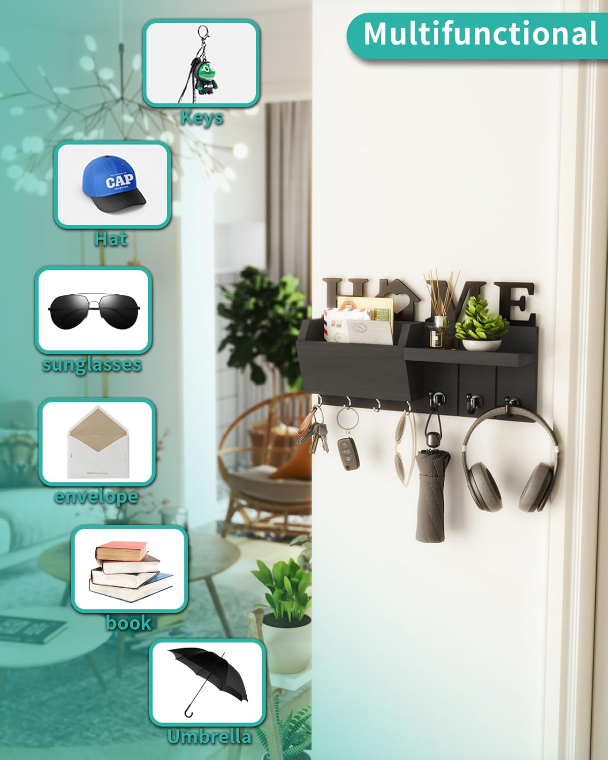Večnamensko shranjevanje: dvojna poštna polica in 7 kavljev za ključe, torbice, pasove, povodce ali manjše predmete.
