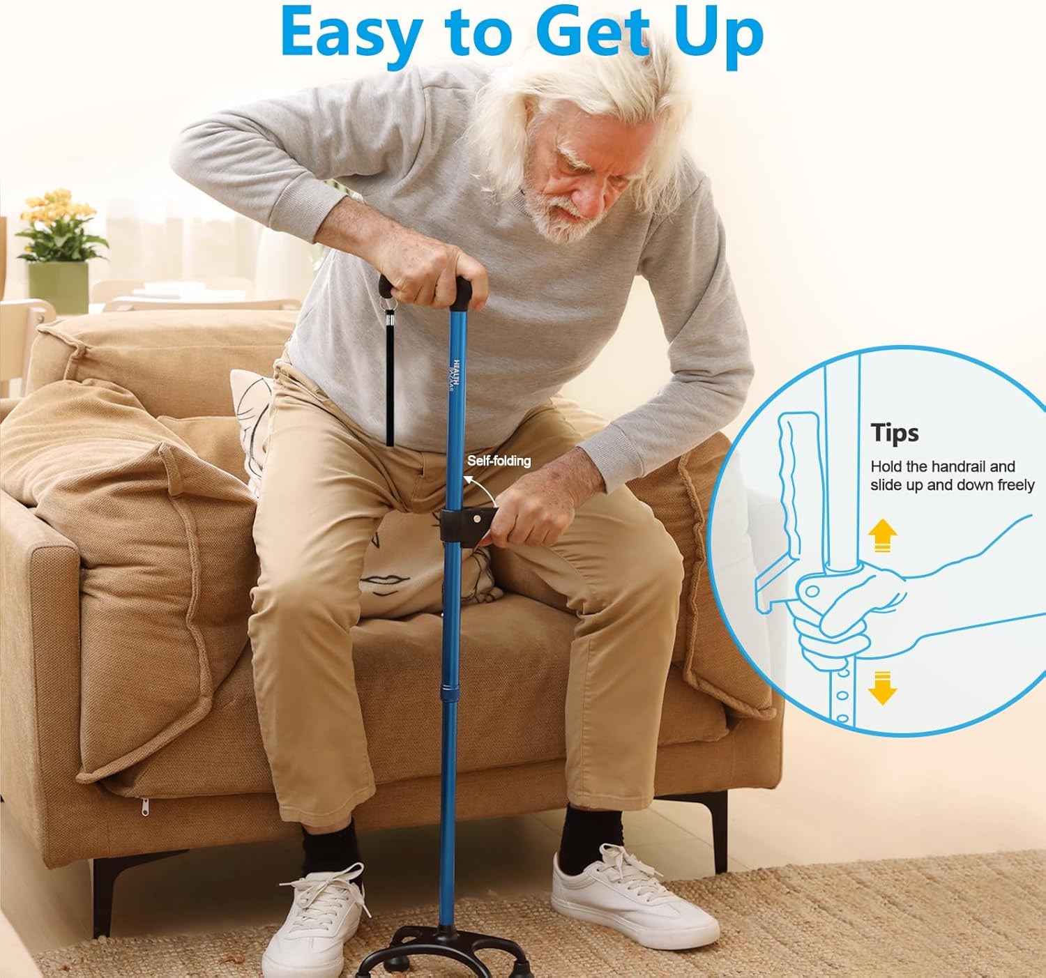 Zanesljiva in lahko prenosna sprehajalna palica s štirinožno osnovo zagotavlja odlično stabilnost, varnost in udobje pri hoji. Izdelana je iz lahkega aluminija, opremljena z ergonomsko oblikovanim ročajem in nastavljivo višino, primerna za uporabo z desno ali levo roko.