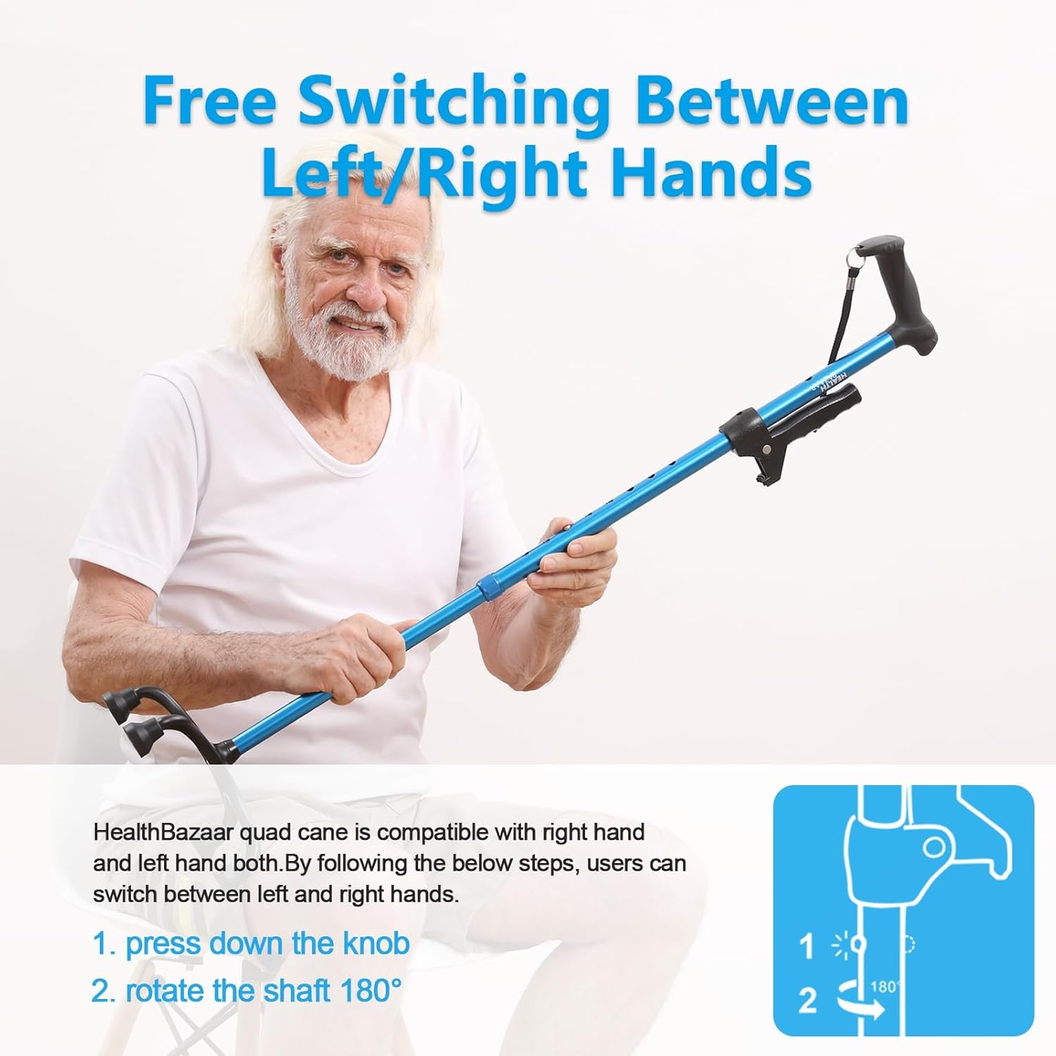 HEALTHBAZAAR štirinožna nastavljiva sprehajalna palica z ergonomsko ročico