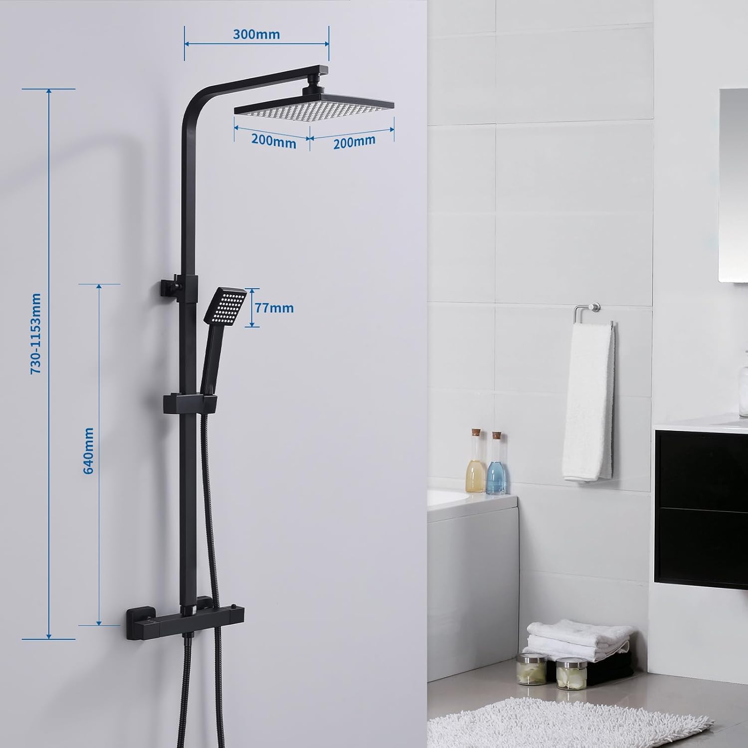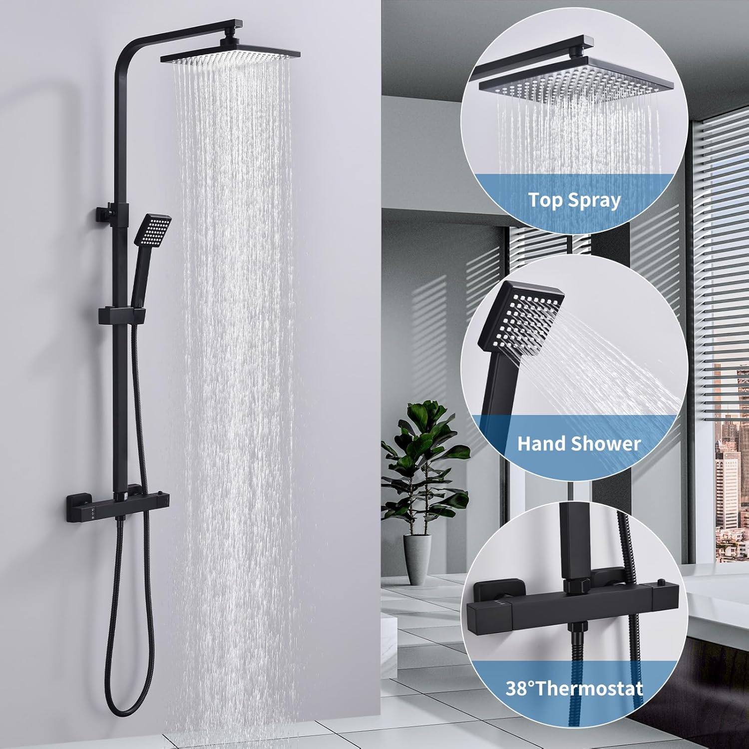 HOMEMELODY Tuš sistem z termostatom, dežno prho in nastavljivo višino