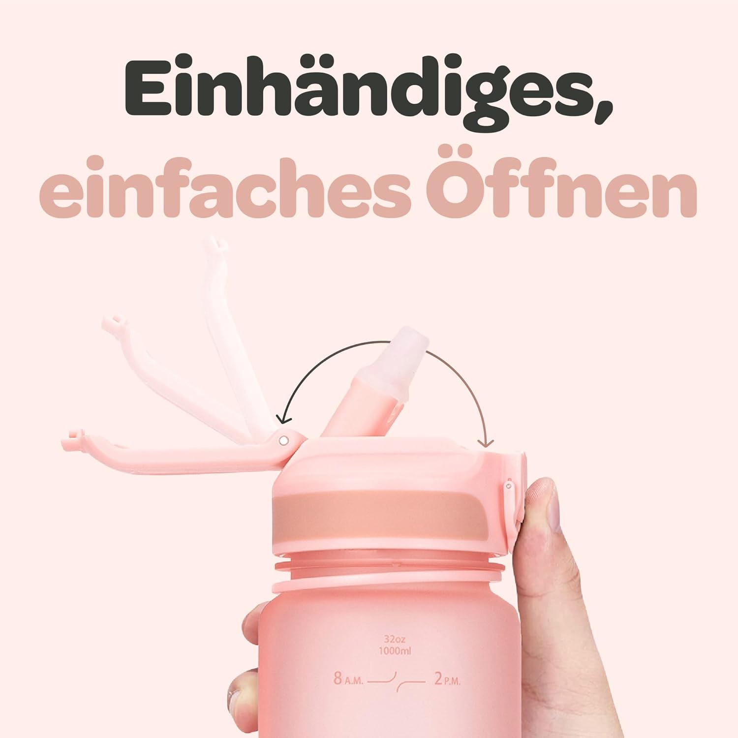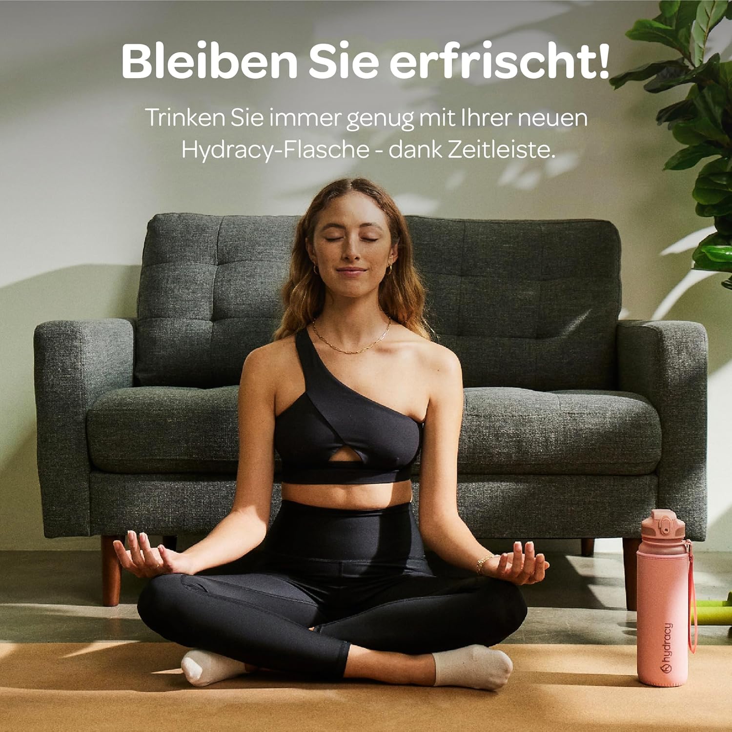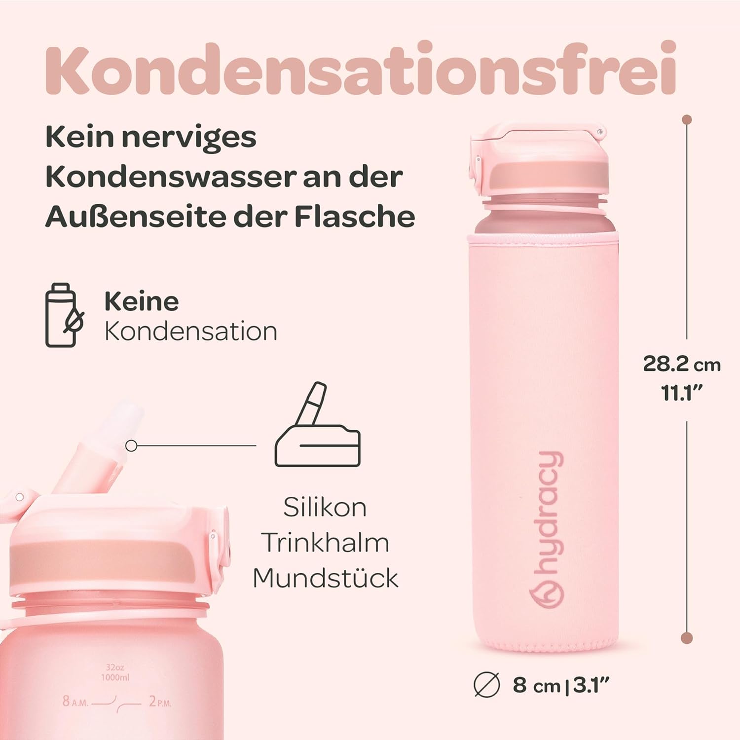 HYDRACY Steklenica Za Vodo S Slamico In Časovnimi Oznakami - 1 L