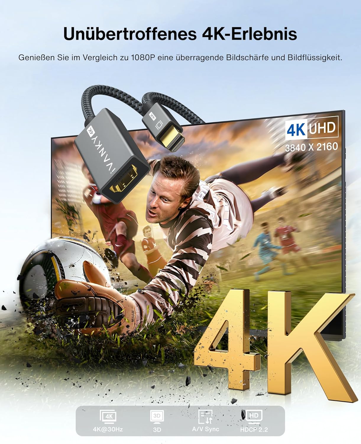 Odlična kakovost slike: Podpora ločljivosti do 4K (3840 × 2160) pri 30 Hz ter jasen, nepopačen prenos zvoka (7.1, 5.1, 2-kanalni).