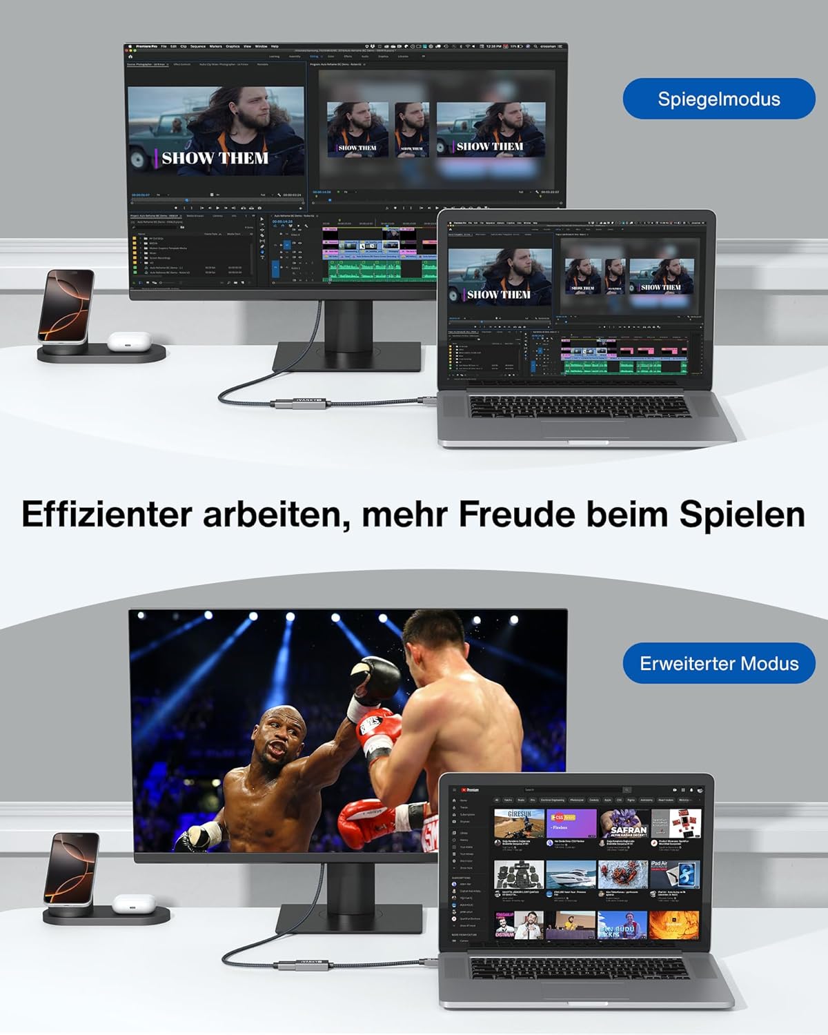 Široka združljivost: Idealno za MacBook Air (2010–2017), MacBook Pro (2010–2015), iMac (2010–2015), Microsoft Surface Pro, Surface Laptop, Surface Book (razen Surface Book 2) ter druge naprave z Mini DisplayPort izhodom.