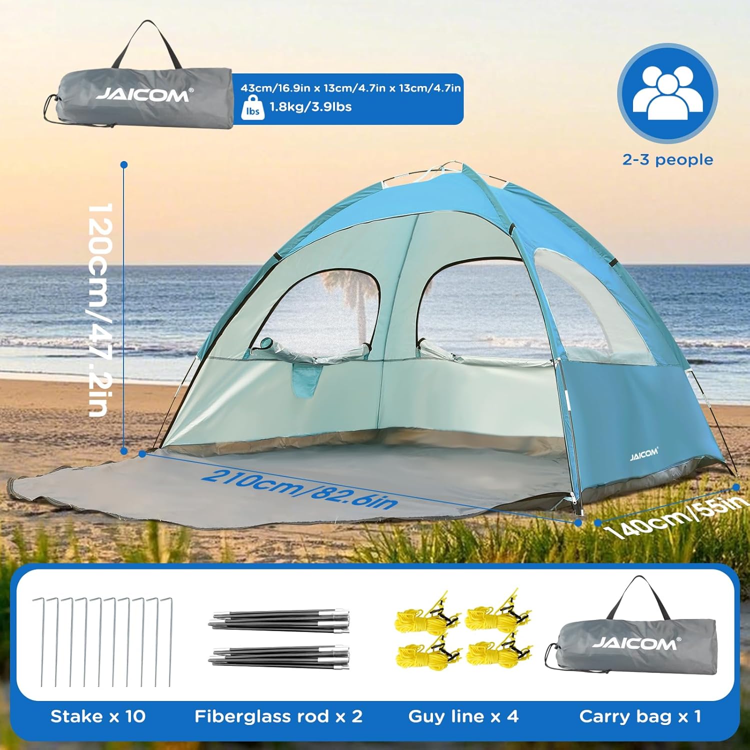 JAICOM plažni šotor za 2–3 osebe z UV zaščito