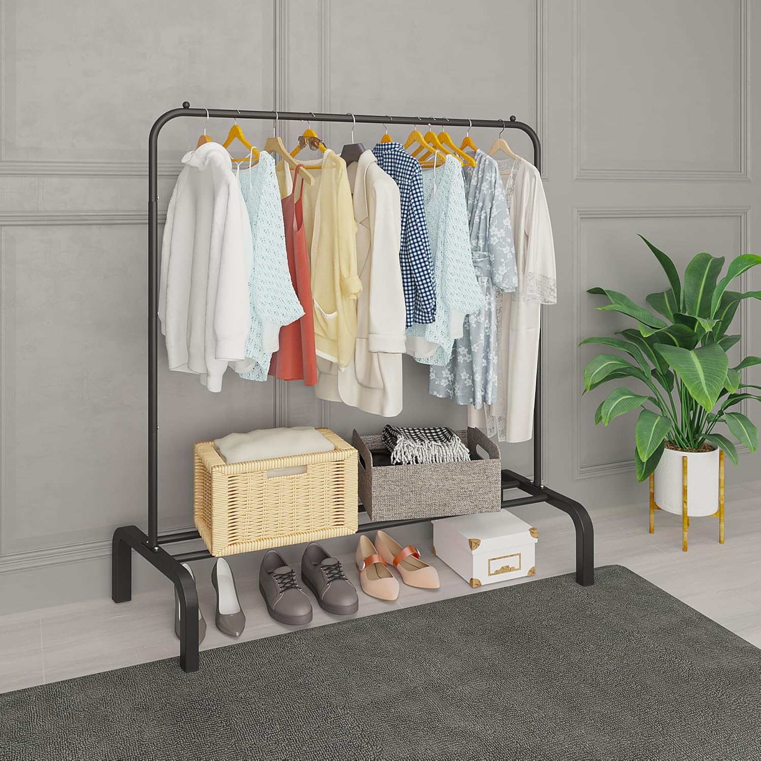 JIUYOTREE kovinsko stojalo za oblačila z spodnjo polico za čevlje