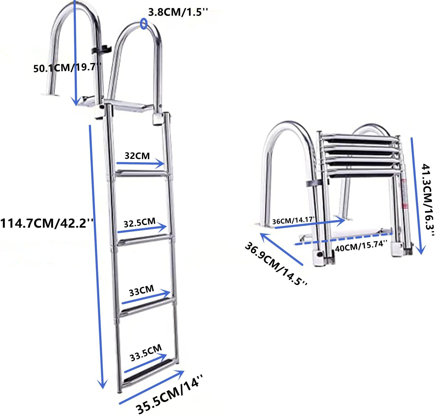 Ladijska lestev iz visokokakovostnega nerjavečega jekla 316 je zasnovana za zanesljivo uporabo v morski vodi. Zložljiva in teleskopska konstrukcija omogoča enostavno shranjevanje in hitro uporabo, široke protizdrsne stopnice pa zagotavljajo varno in udobno vstopanje iz vode.