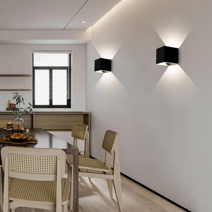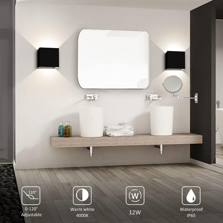 Komplet štirih LED stenskih svetilk združuje moderen dizajn, visoko kakovost in funkcionalnost. Z možnostjo nastavitve svetlobnega snopa navzgor in navzdol ter nevtralno belo svetlobo (4000 K) ustvarjajo prijetno, uravnoteženo osvetlitev. Zaradi zaščite IP65 so svetilke primerne tako za notranjo kot zunanjo uporabo – od dnevne sobe do vrta.
