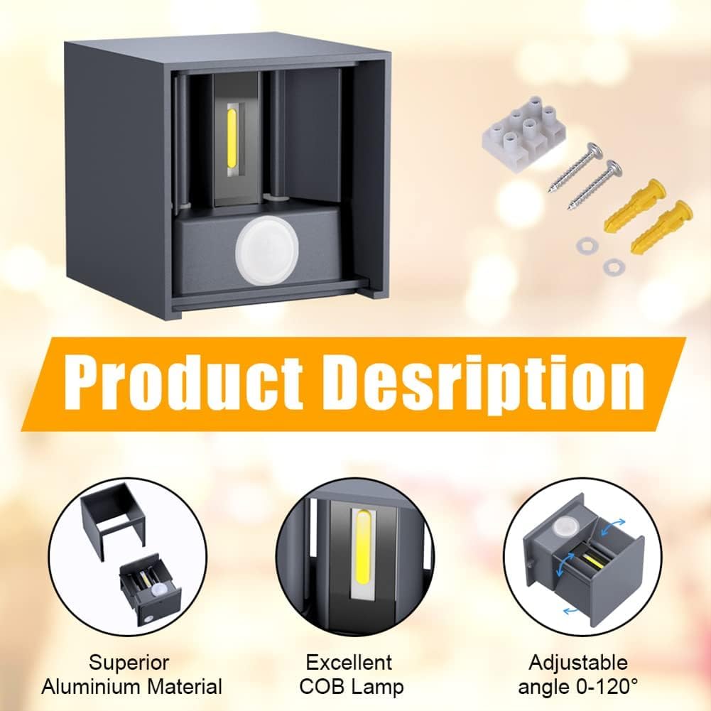 Svetilka ponuja elegantno rešitev za notranjo in zunanjo osvetlitev s samodejnim prižiganjem ob zaznavi gibanja. Sodobno ohišje iz litega aluminija v antracitni barvi združuje estetski videz in trpežnost, nastavljiv svetlobni kot pa omogoča ustvarjanje različnih svetlobnih učinkov glede na prostor in namen uporabe.
