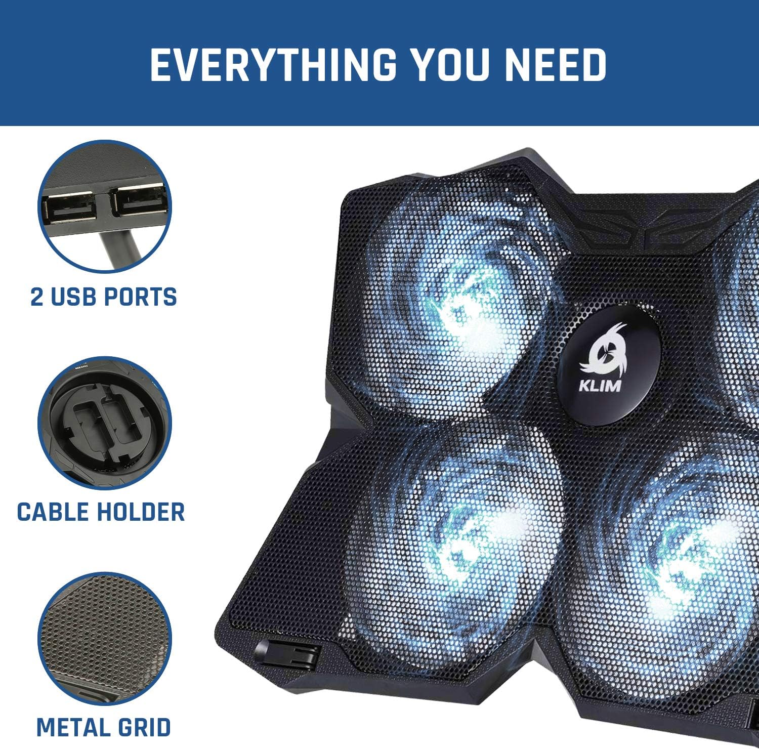 KLIM Wind je visoko zmogljiv hladilnik za prenosnike, zasnovan za zaščito naprave pred pregrevanjem in izboljšanje njene zmogljivosti. Opremljen je s štirimi zmogljivimi ventilatorji, ki se vrtijo do 1200 obr./min, kar omogoča hitro in učinkovito hlajenje celotnega prenosnika. Hladilnik je primeren za prenosnike, igralne konzole in druge računalniške naprave.