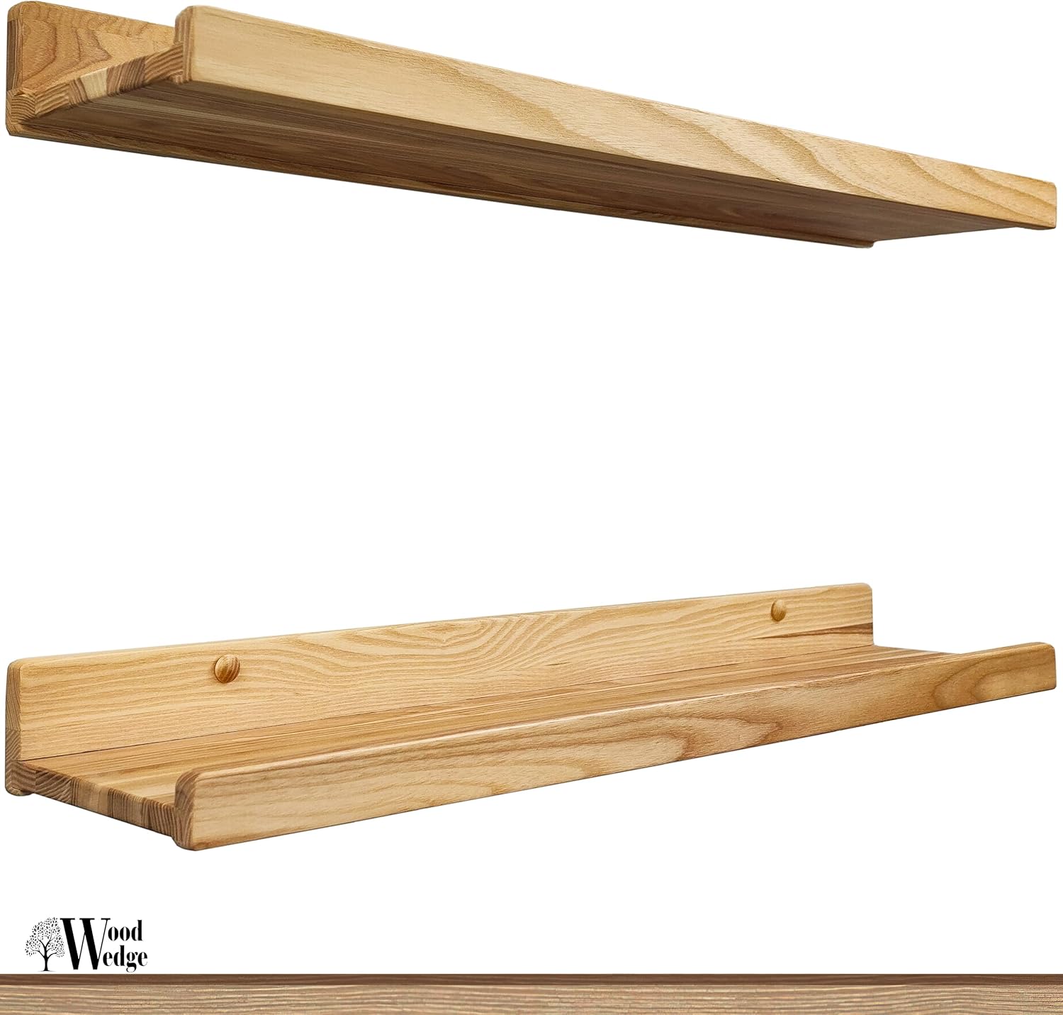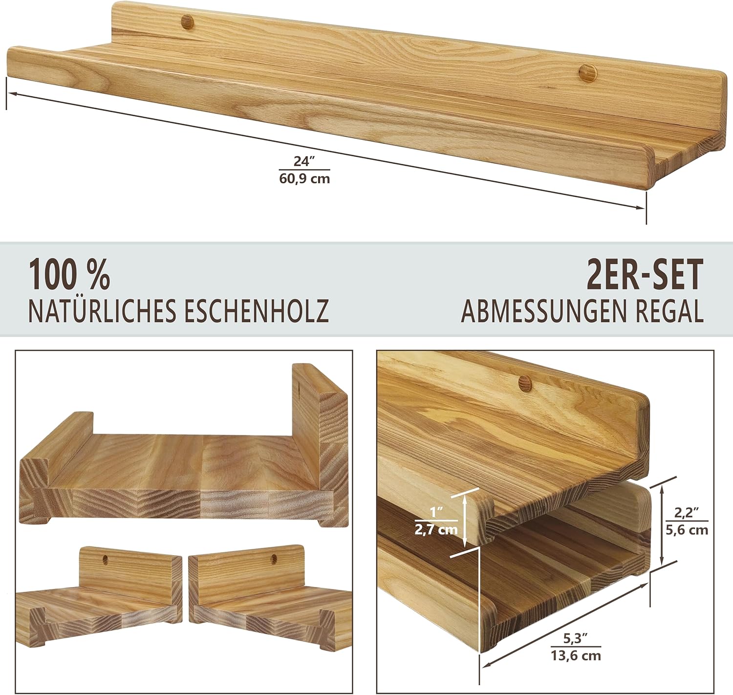 Komplet 2 ročno izdelanih lebdečih polic iz masivnega lesa jesena - 60cm