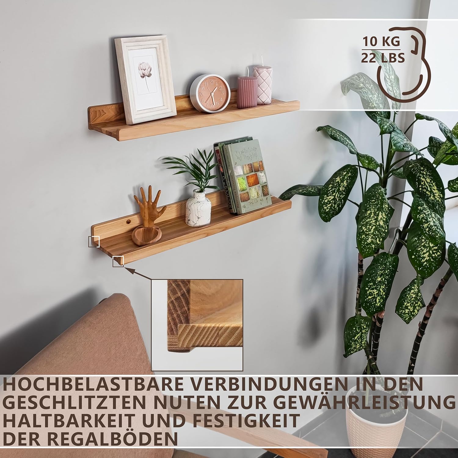 Te plavajoče police so odlična izbira za prikaz knjig, fotografij, dekorativnih predmetov ali shranjevanje manjših potrebščin, hkrati pa prostoru dodajo topel in domač občutek.