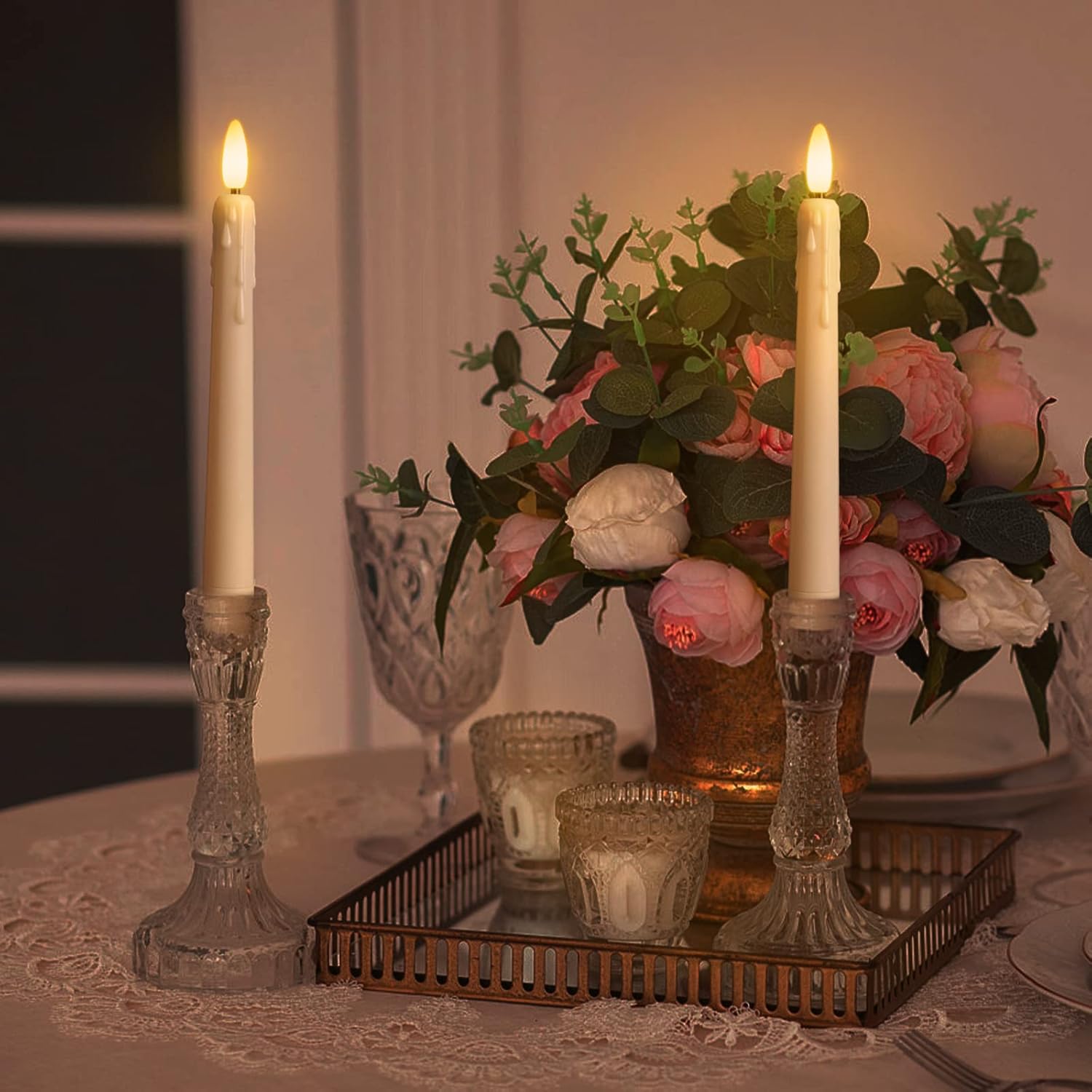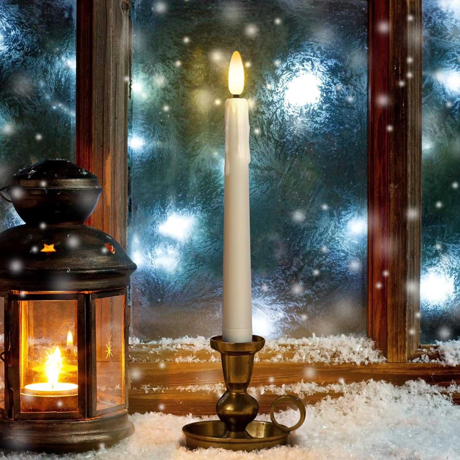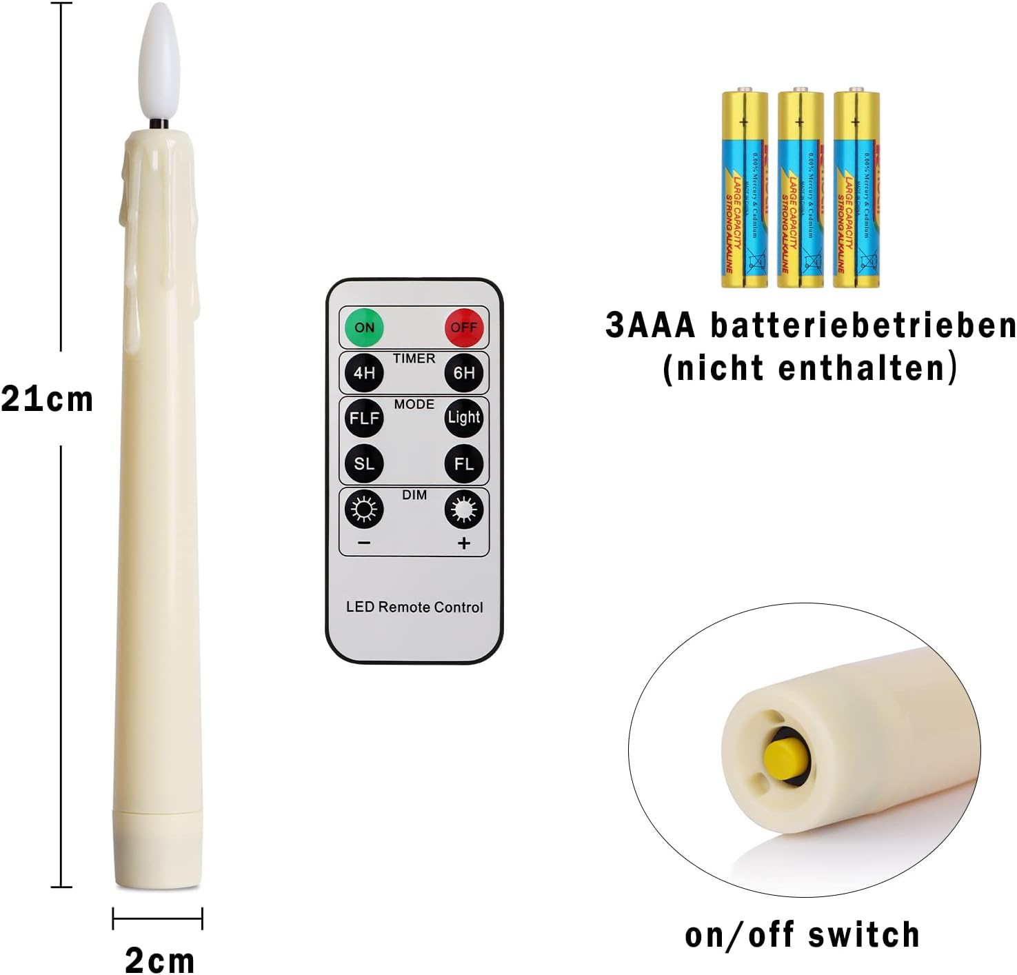 Komplet realističnih LED stožčastih sveč s kapljicami voska in utripajočo toplo belo svetlobo, ki posnema pravo svečo. Idealne so za varno in estetsko dekoracijo doma, praznikov ali posebnih priložnosti.