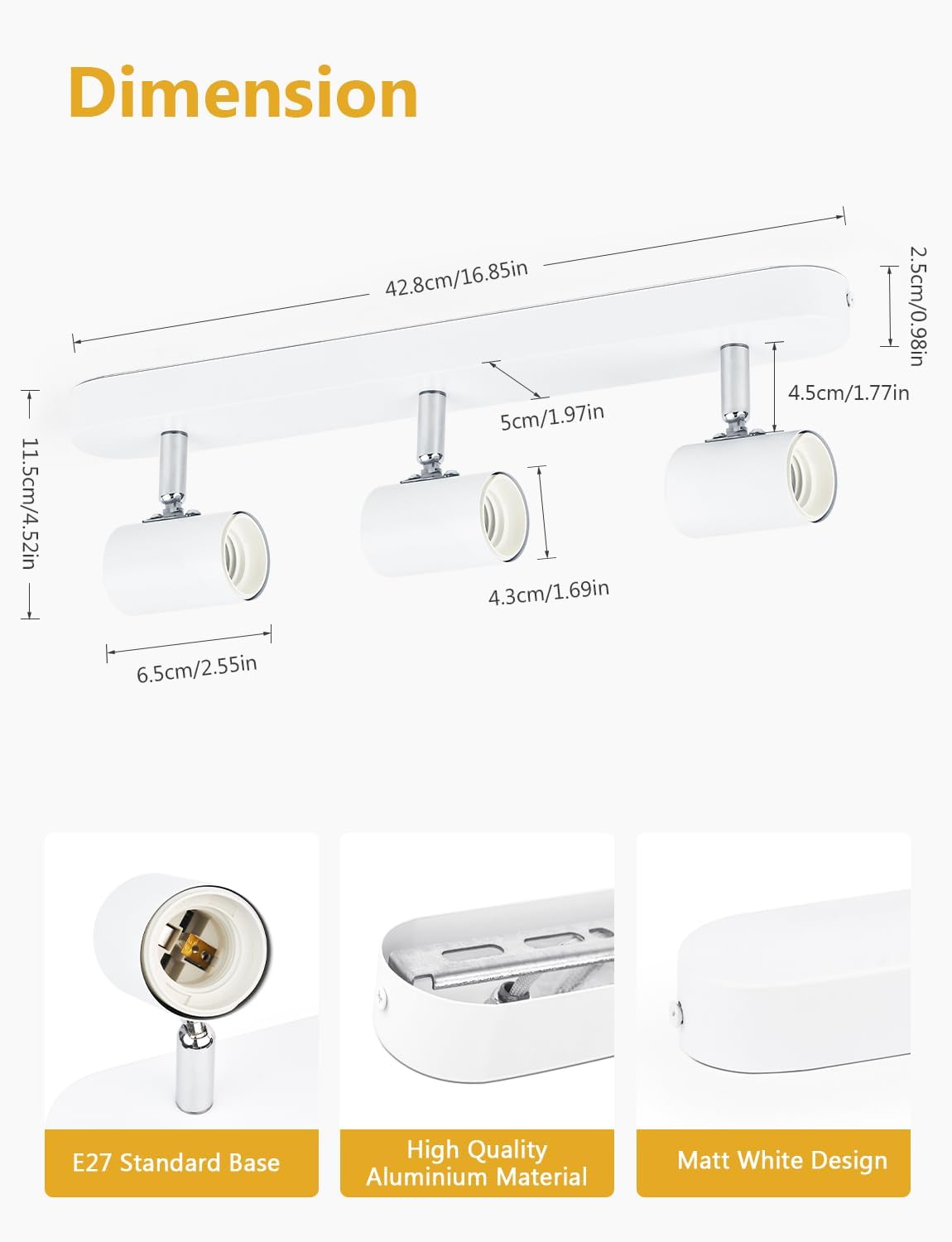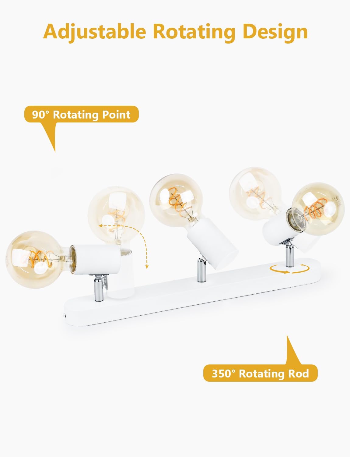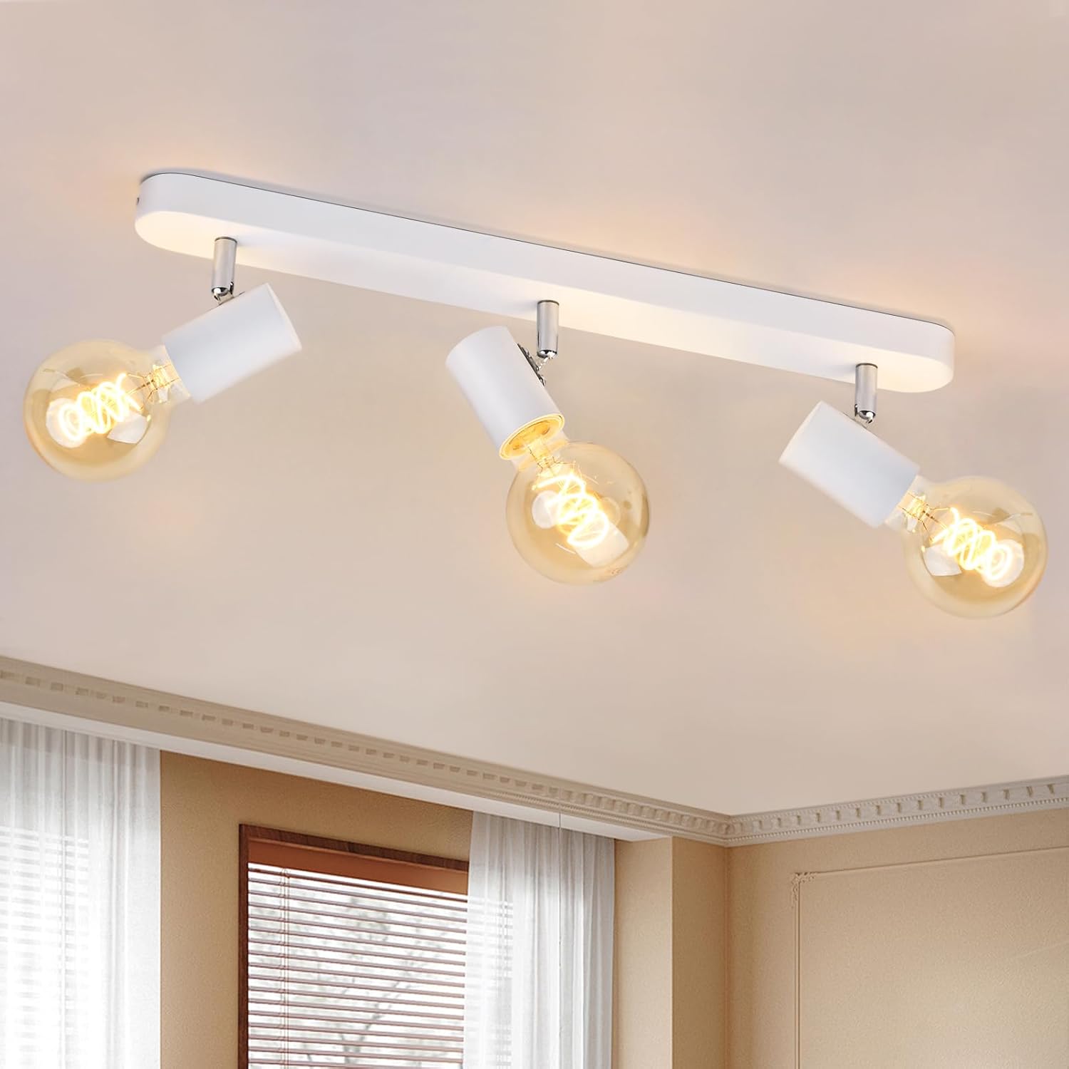 Elegantna stropna svetilka s tremi vrtljivimi reflektorji E27 združuje retro obliko in funkcionalnost. Izdelana iz kakovostnega aluminija in železa, omogoča prilagoditev svetlobnega kota za optimalno osvetlitev različnih prostorov – od dnevne sobe do hodnika ali kuhinje.