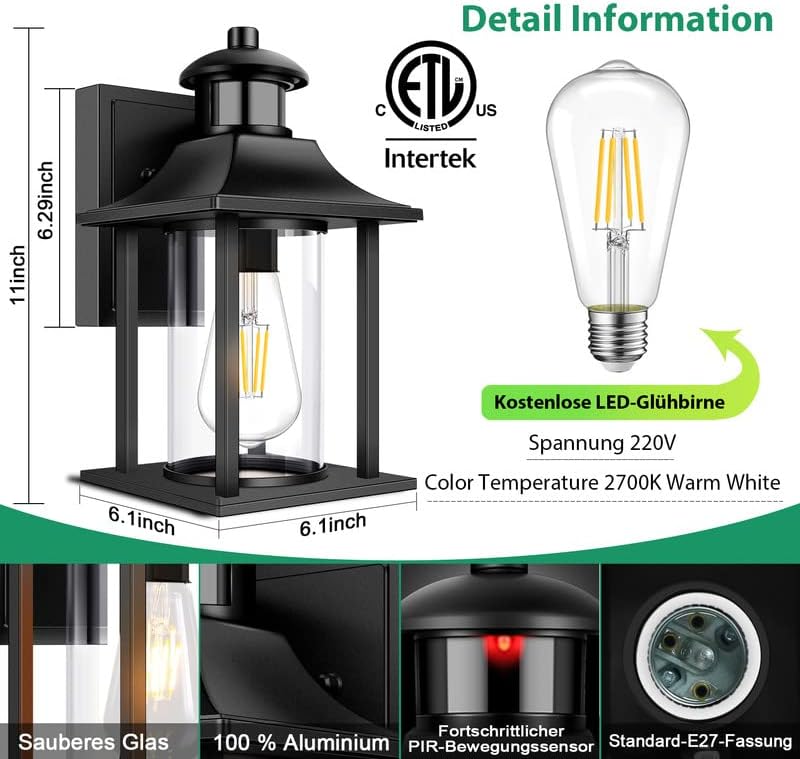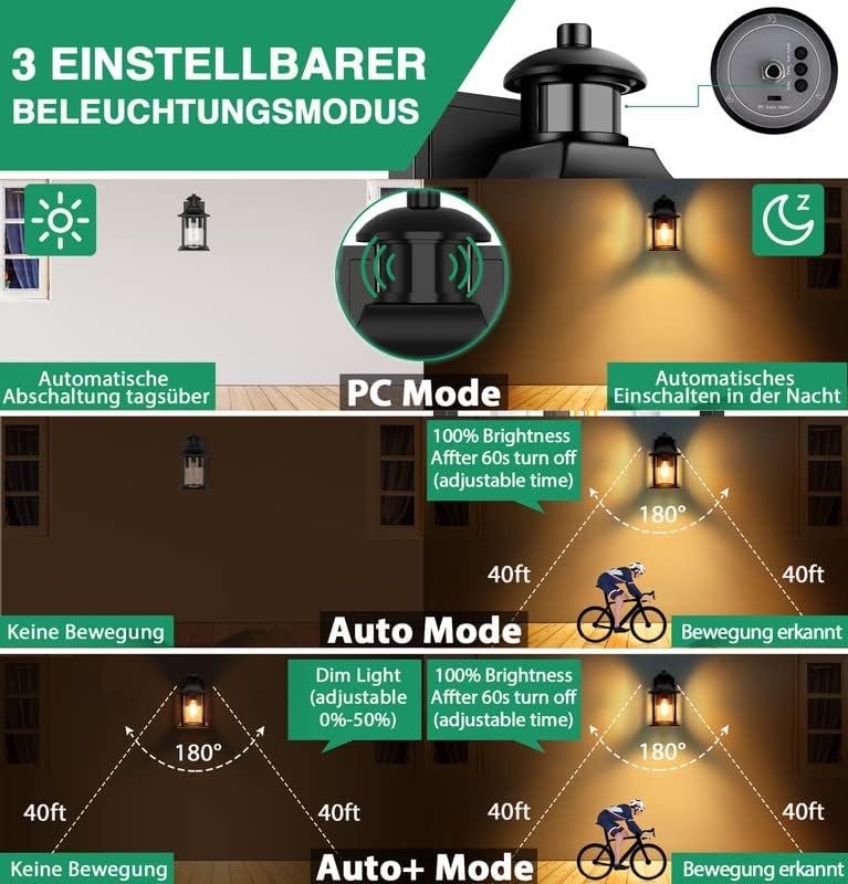 LAMOMO zunanja svetilka z zaznavanjem gibanja in 3 načini osvetlitve