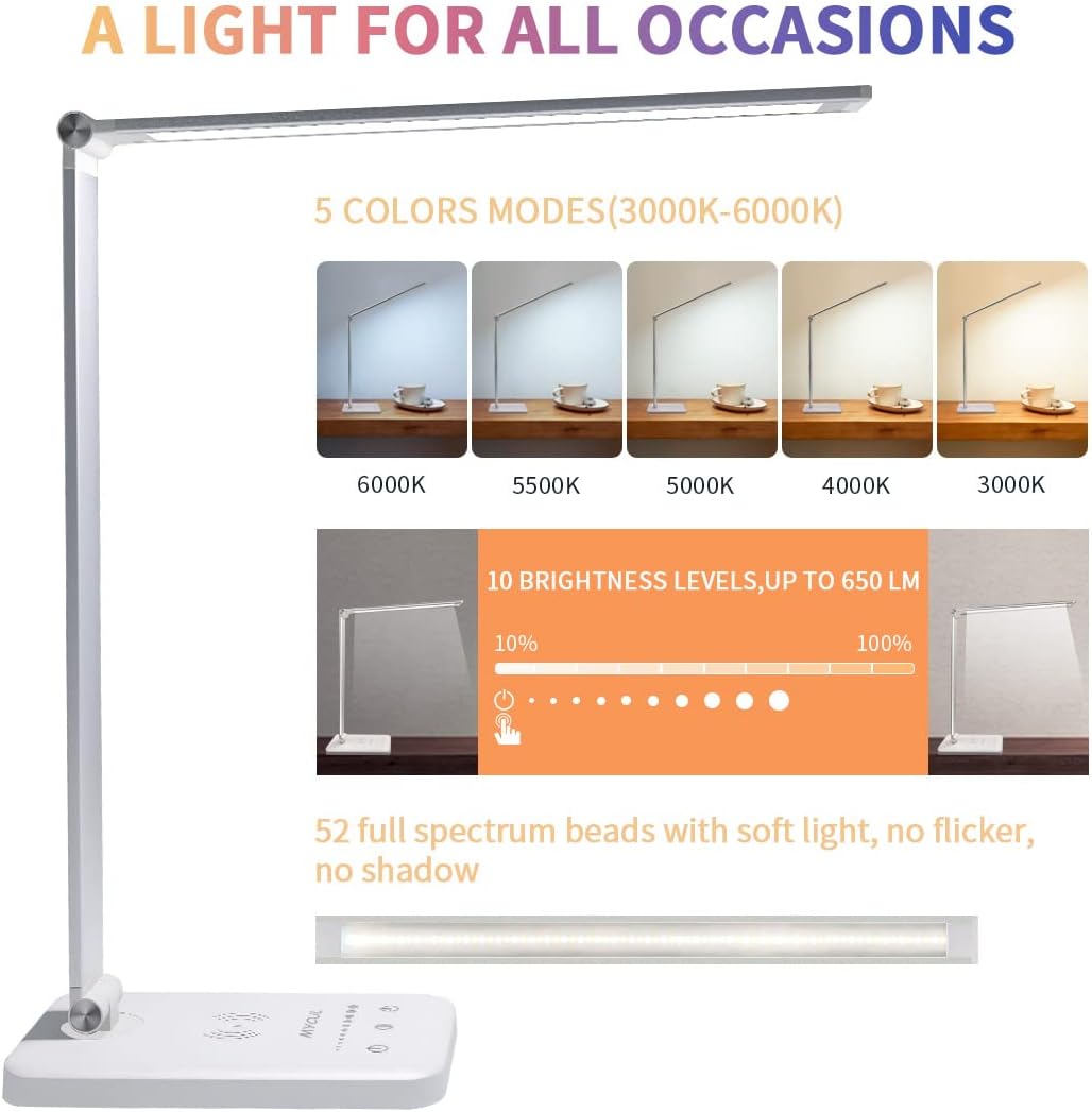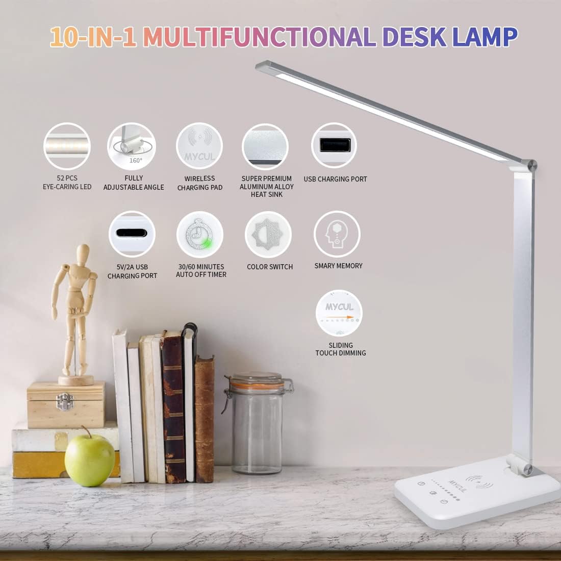 Ta elegantna LED namizna svetilka prinaša sodobno osvetlitev in praktične funkcije, kot sta brezžično polnjenje telefonov in USB priključek za dodatne naprave. Nastavljive barvne temperature in stopnje svetlosti omogočajo optimalne pogoje za branje, delo, učenje ali sprostitev, ob tem pa skrbi za zaščito oči in dolgo življenjsko dobo.